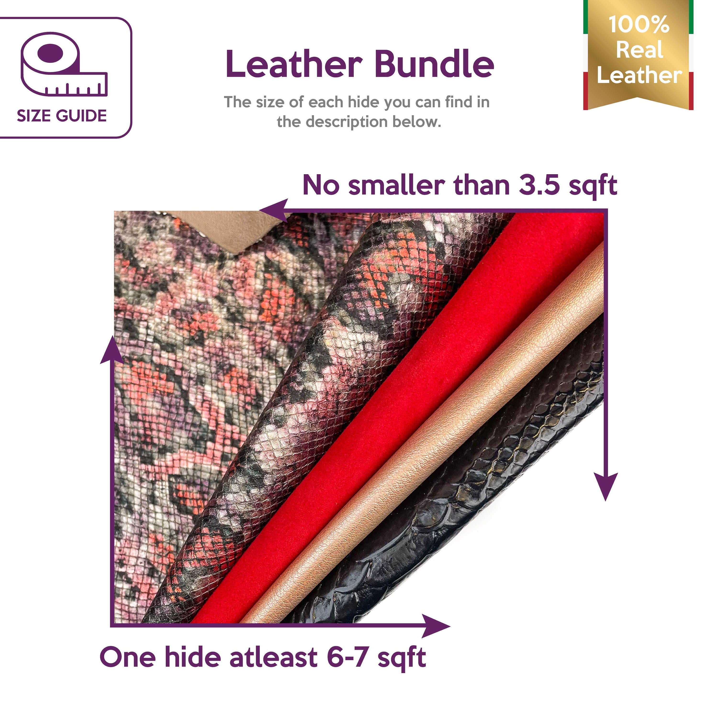 Four different leather pieces as pictures. Each hide's size is different. Amazing and gorgeous material for your best projects! Our mission is to provide only the best quality Italian leather samples to other leather workers, crafters of all kinds, small businesses, or Etsy shops for your own projects.