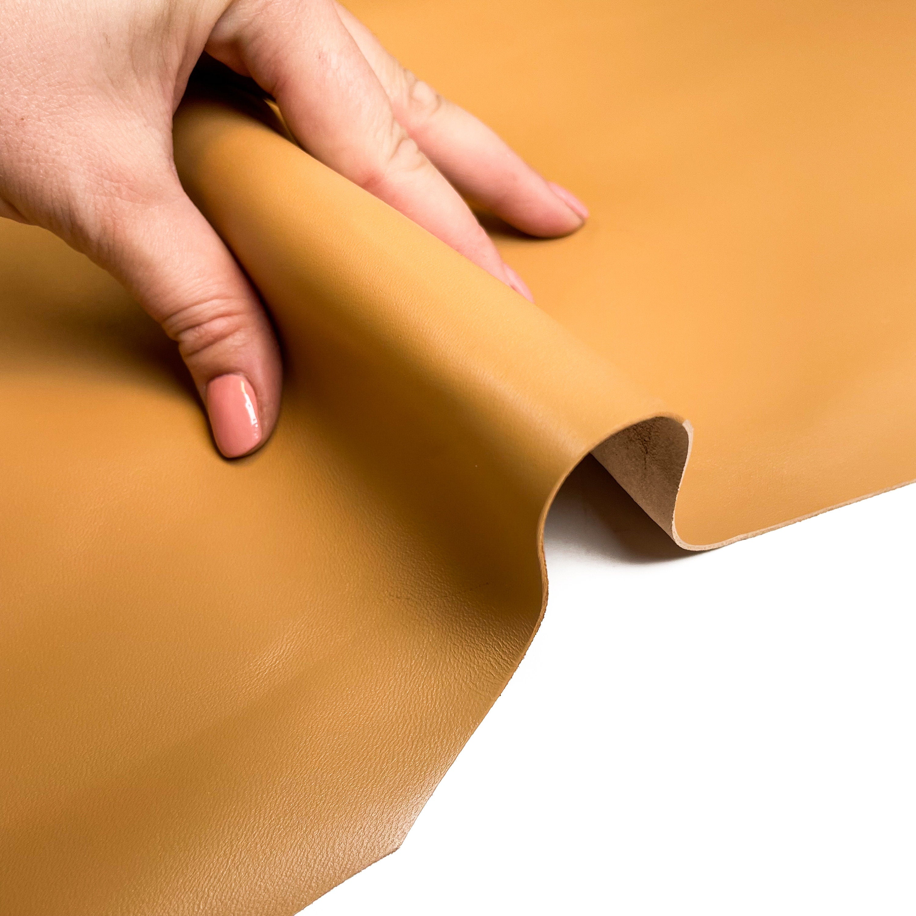 Brown Leather Fabric, Brown Natural Leather Brown Lamb Skin Real Leather Italian Pelle Brown Real Leather for bag, SPRUCE YELLOW, 64, 1.0 mm