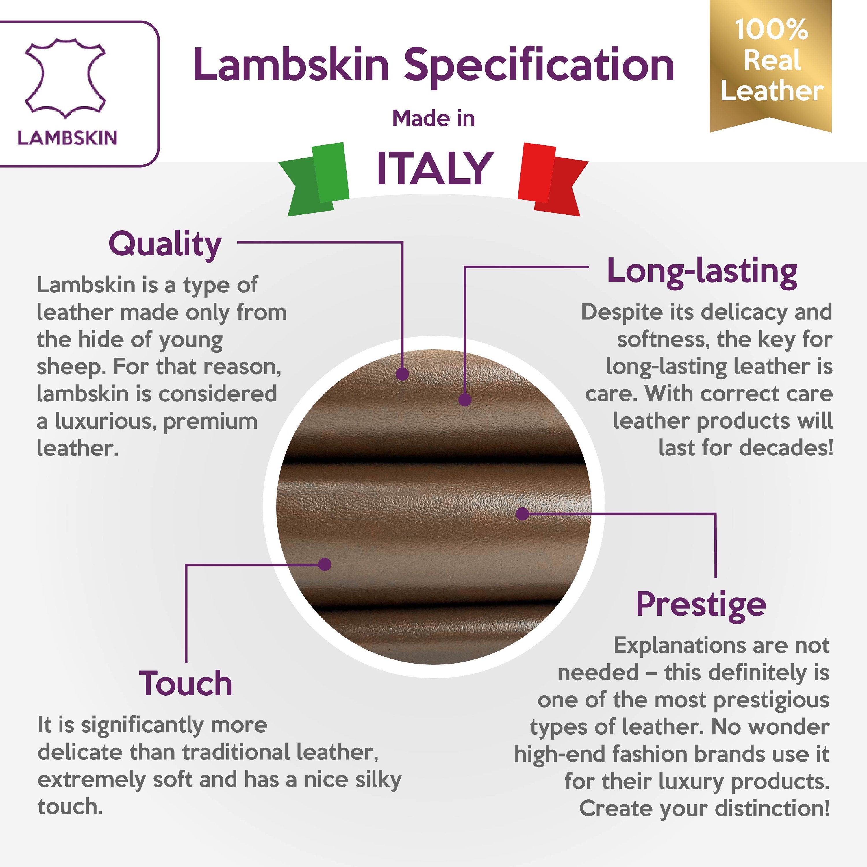 -Brown lambskin leather material, nappa leather pieces, real sheep skin sheets for sewing. Dark brown leather pieces with warm shade, really nice and soft leather, lightweight itself. Try it!