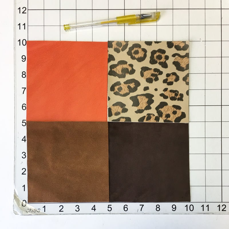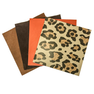 Brown And Orange, Jaguar Print 5x5in Leather Sheets 4 pcs