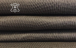BROWN stretch leather fabric, natural leather hide for elastic clothing, luxury taupe sheep leather fabric for leggings, durable and thin genuine leather pieces with snake leather texture, called "BROWN SNAKE" 625 0.6mm