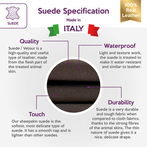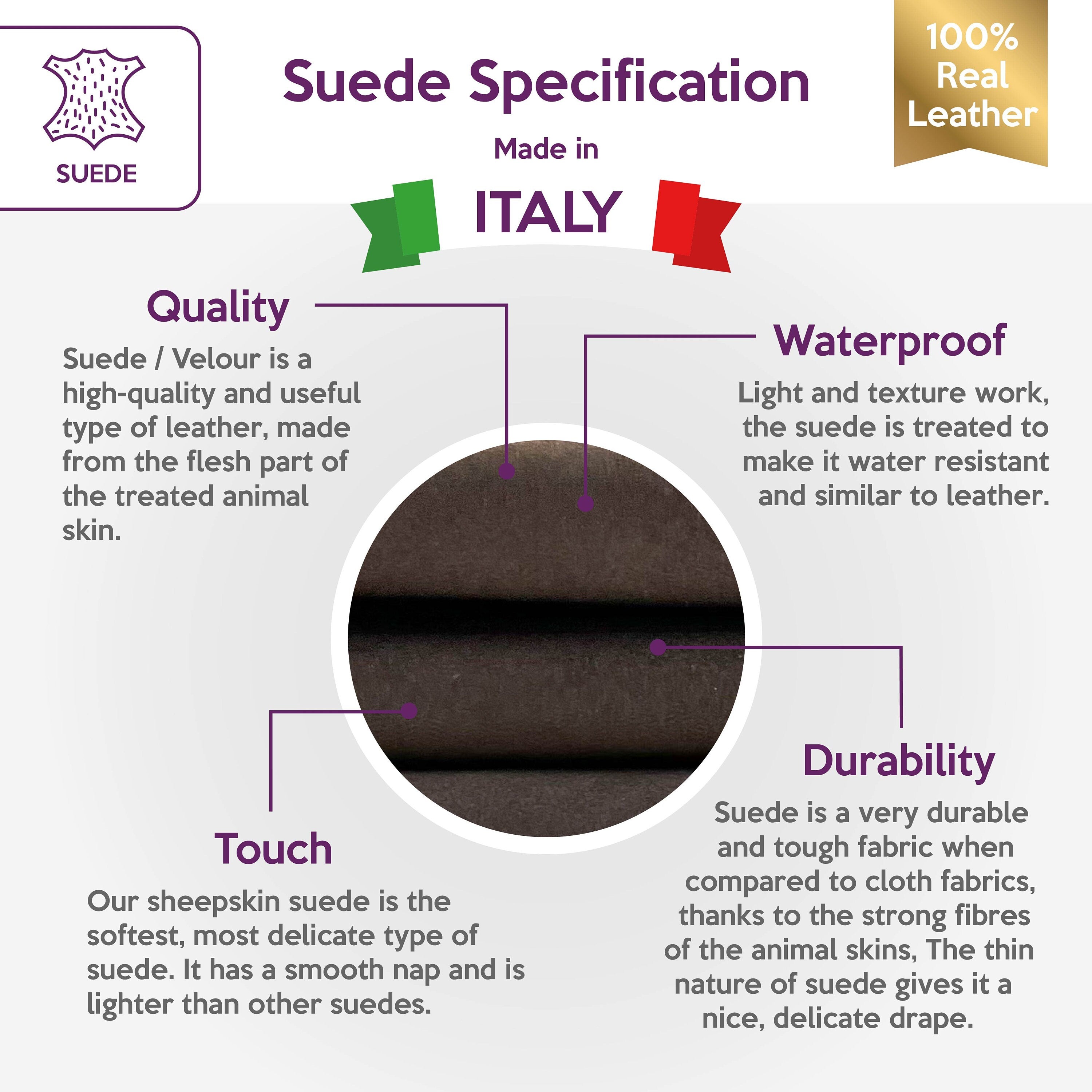 Our high-quality lambskin suede leather hides are made in the finest tannery in Italy! Amazing pieces for your best projects! Our mission is to provide only the best quality Italian leather samples to other leather workers, crafters, small businesses or for your own fun projects.