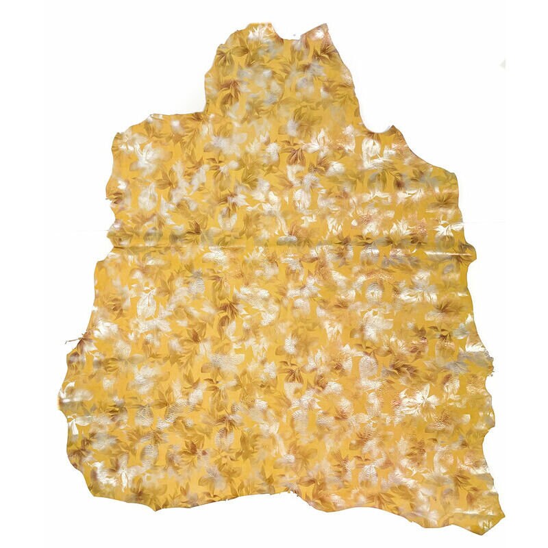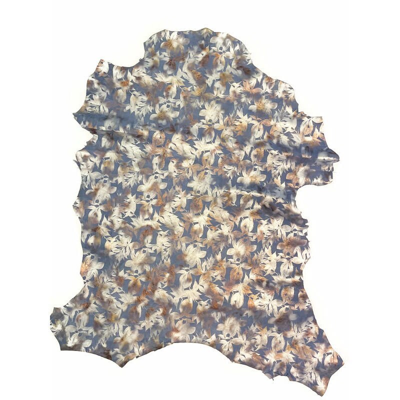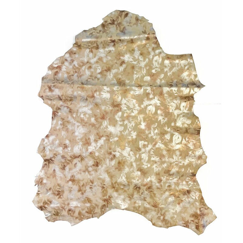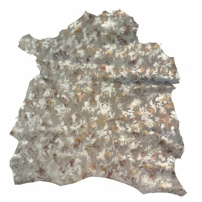 - Soft leather with metallic flower print all over hides. Natural lambskin hides from the best Italian tannery. Perfect leather for sewing. Choose between 8 different colors.