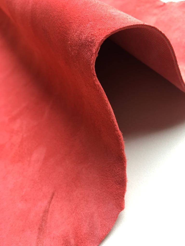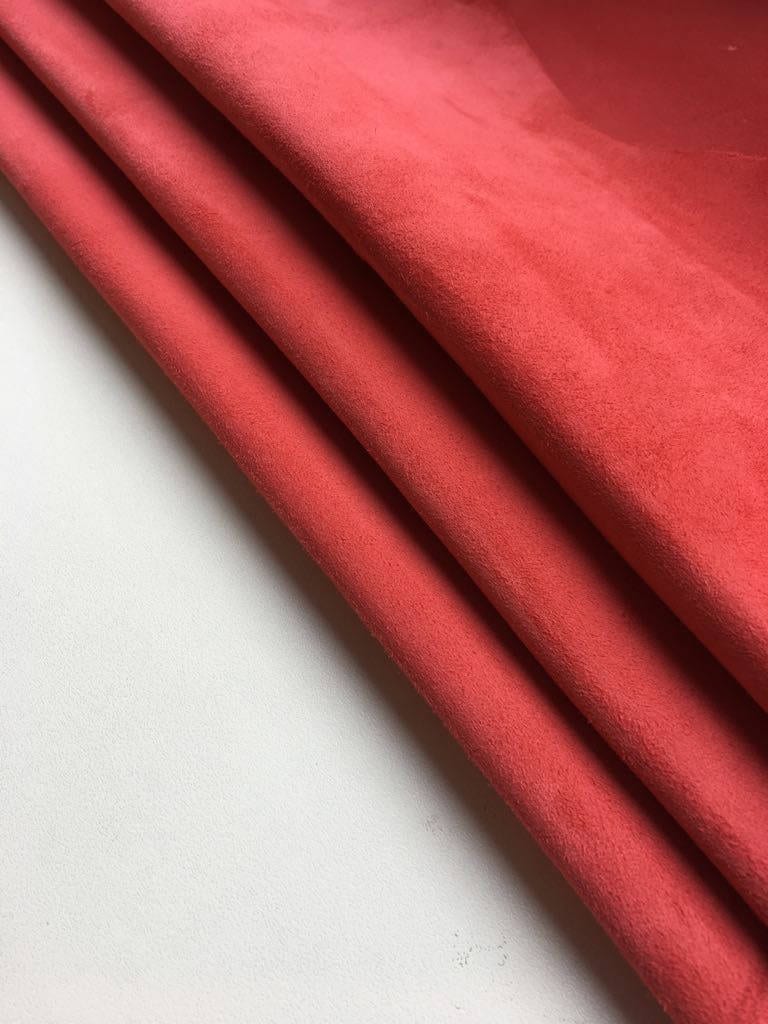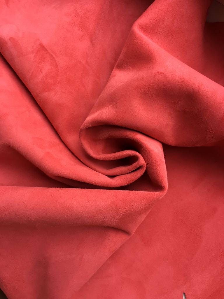 CORAL suede fabric, orange genuine sheep suede, coral natural lamb skin, genuine leather material, sold per piece, ROSE of SHARON 215, 1.0mm Name: ROSE OF SHARON Code: 215(17-1635)1.0 Color: Coral /...