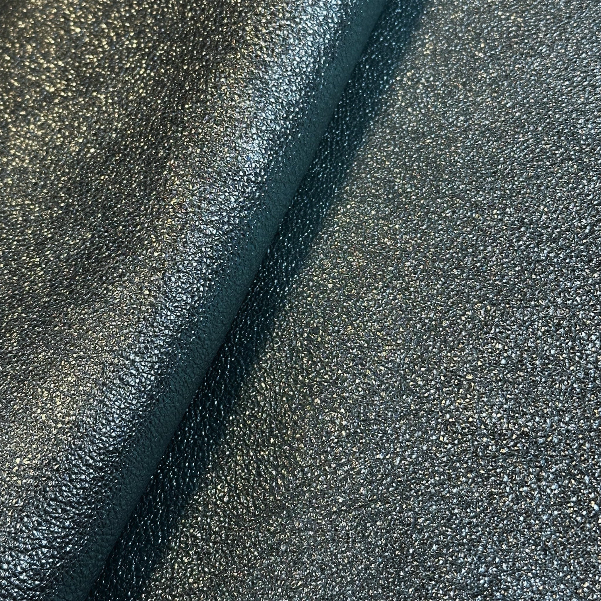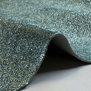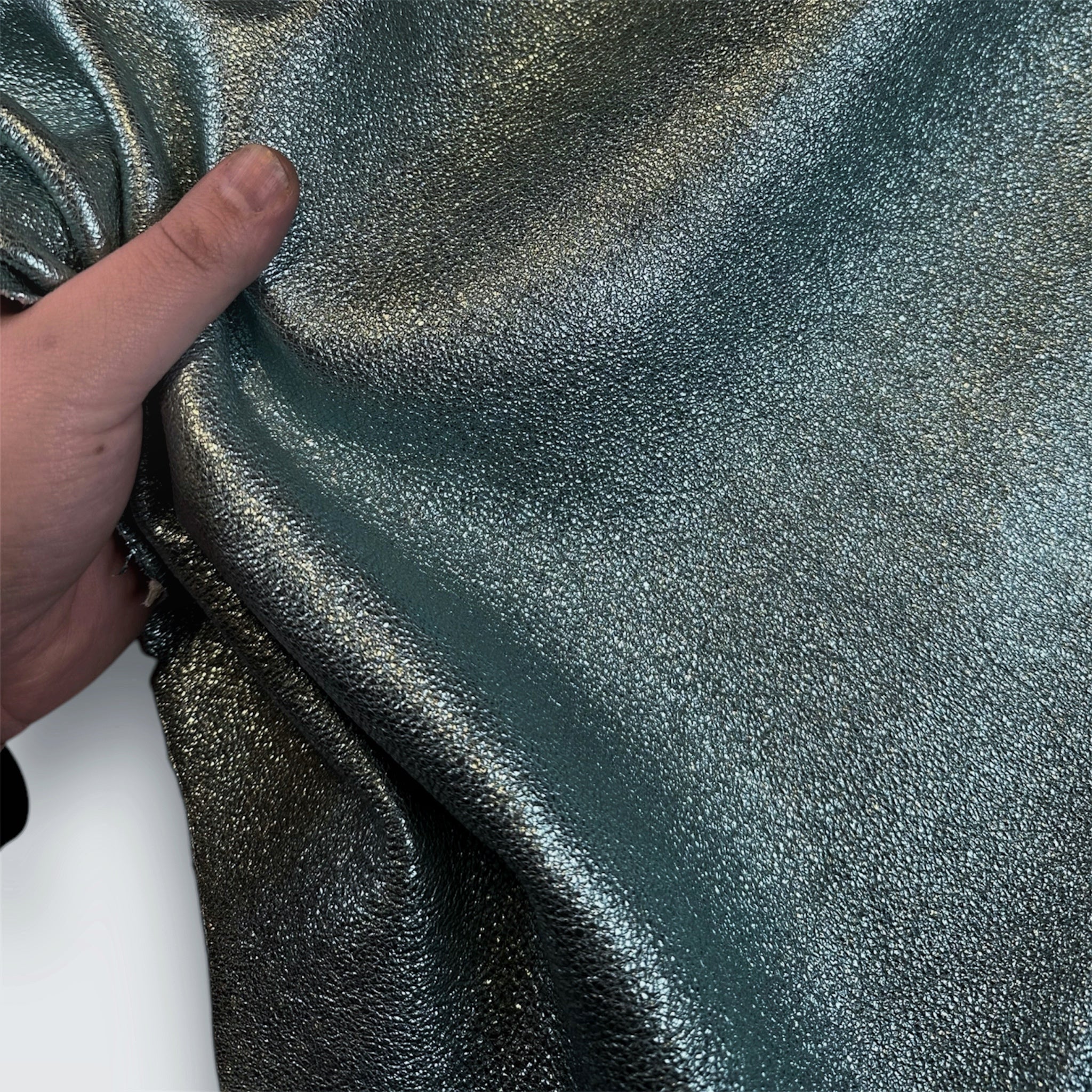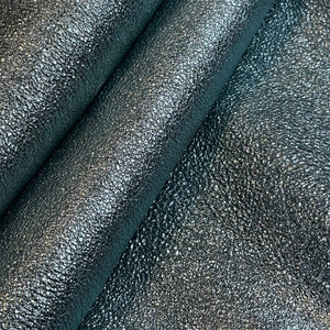 Crunchy Textured Lambskin Pieces. Metallic dark silver with turquoise blue shine.Thick Italian fabric. Amazing leather for bag and purse crafters will be long-lasting. Our mission is to provide only the highest quality Italian leather to other leather workers, crafters of all kinds, small businesses, or shops for your projects.