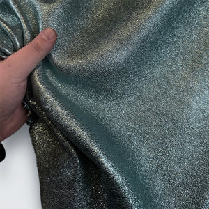 Crunchy Dark Silver With Turquoise Blue Shine  Lambskin PiecesThick Metallic Hides 1.5mm DARK TURQUOISE 1563