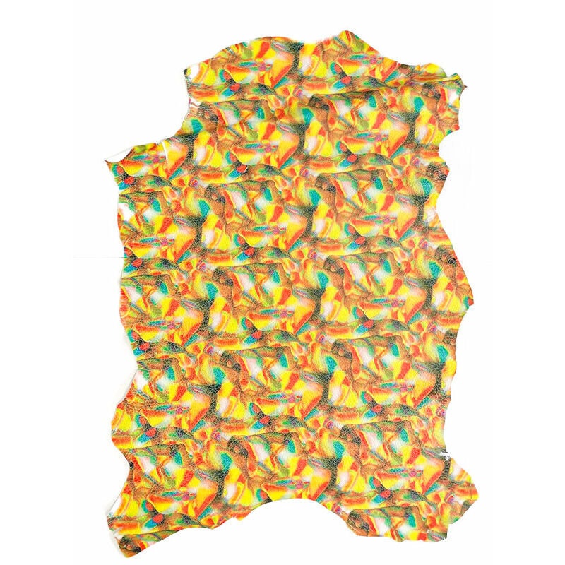 High-quality lambskin leather with colorful crunchy print. Bright eather hides for your best projects! Our mission is to provide only the best quality Italian leather to other leather workers, crafters of all kinds, small businesses, or Etsy shop for your own projects.