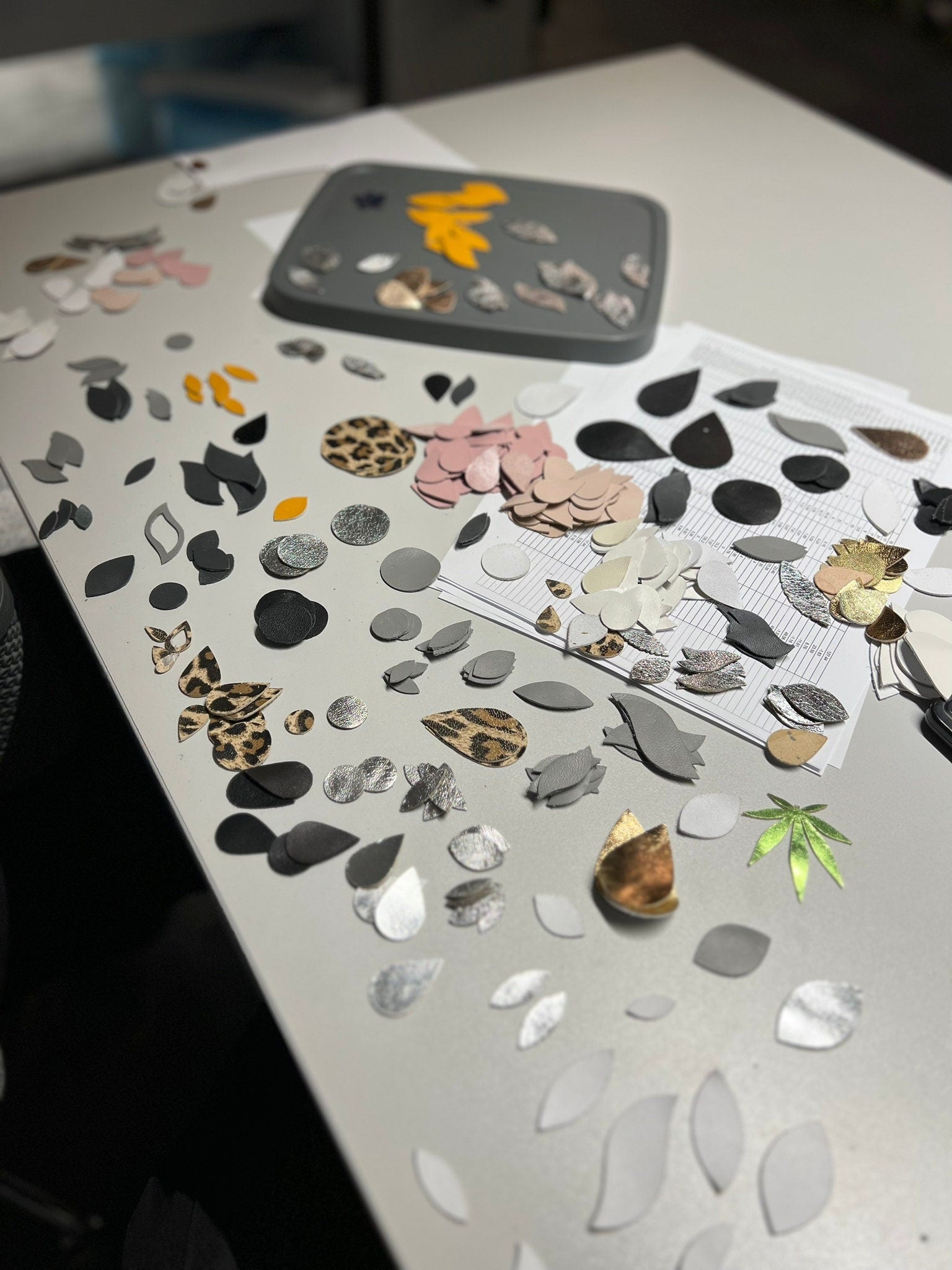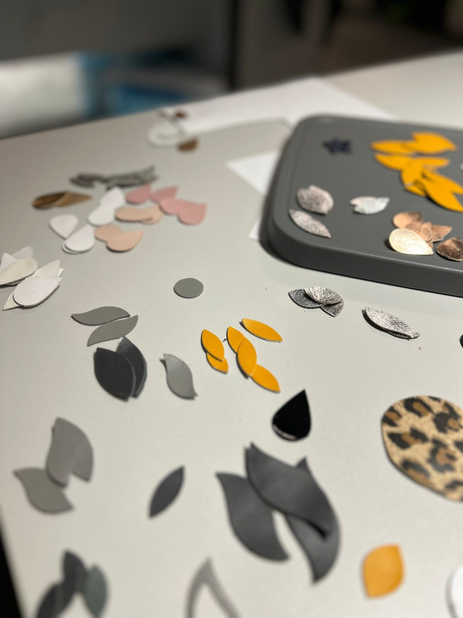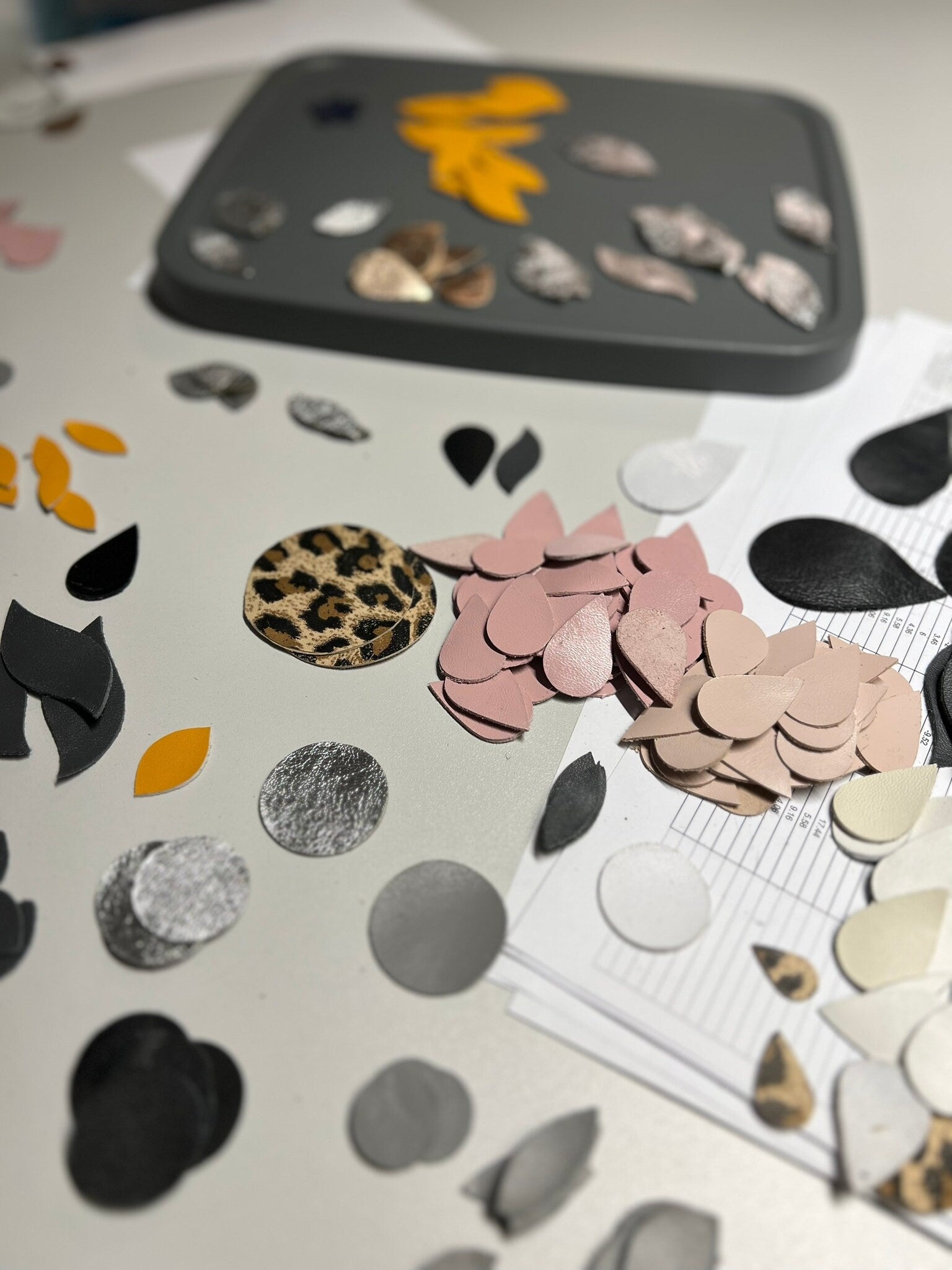 Cricut cut different colors and shape of premium lambskin earring blanks, all seen in the photo.