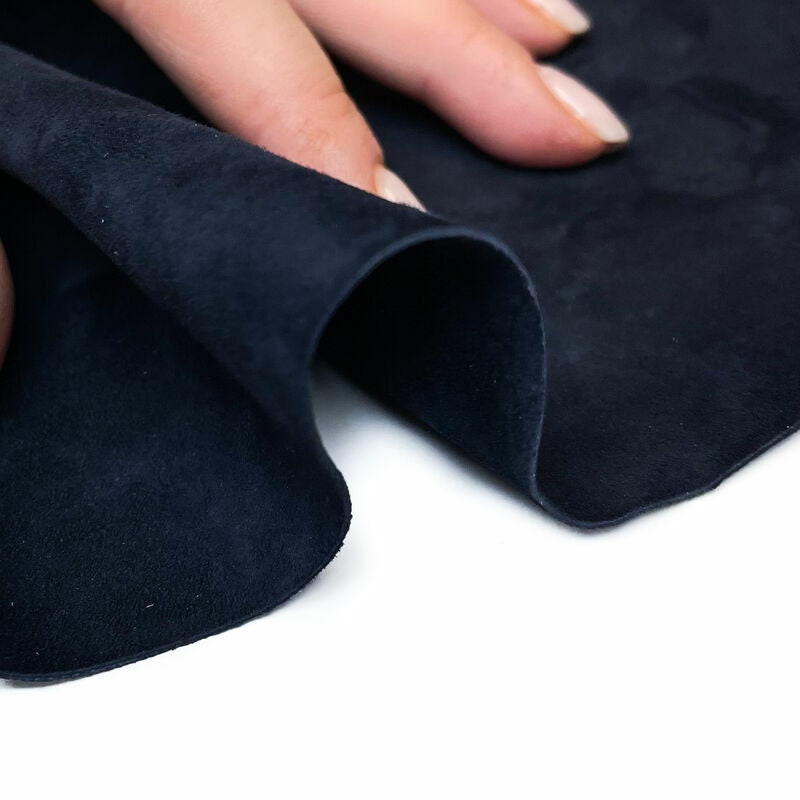 High-quality suede lambskin leather fabric hides in dark blue. Amazing pieces for your best projects! Our mission is to provide only the best quality Italian leather samples to other leather workers, crafters of all kinds, small businesses or Etsy shop for your own projects.