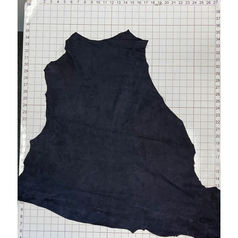 - Soft dark blue suede leather hides for sewing. Soft, pleasant and really nice velour material. Colored throughout - back is the same color as front. Nice suede leather pieces, soft and rich color.