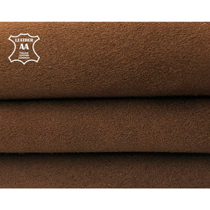 - Soft brown suede leather hides for sewing. Soft, pleasant and really nice velour material. Colored throughout - back is the same color as front. Nice suede leather pieces, soft and rich color.