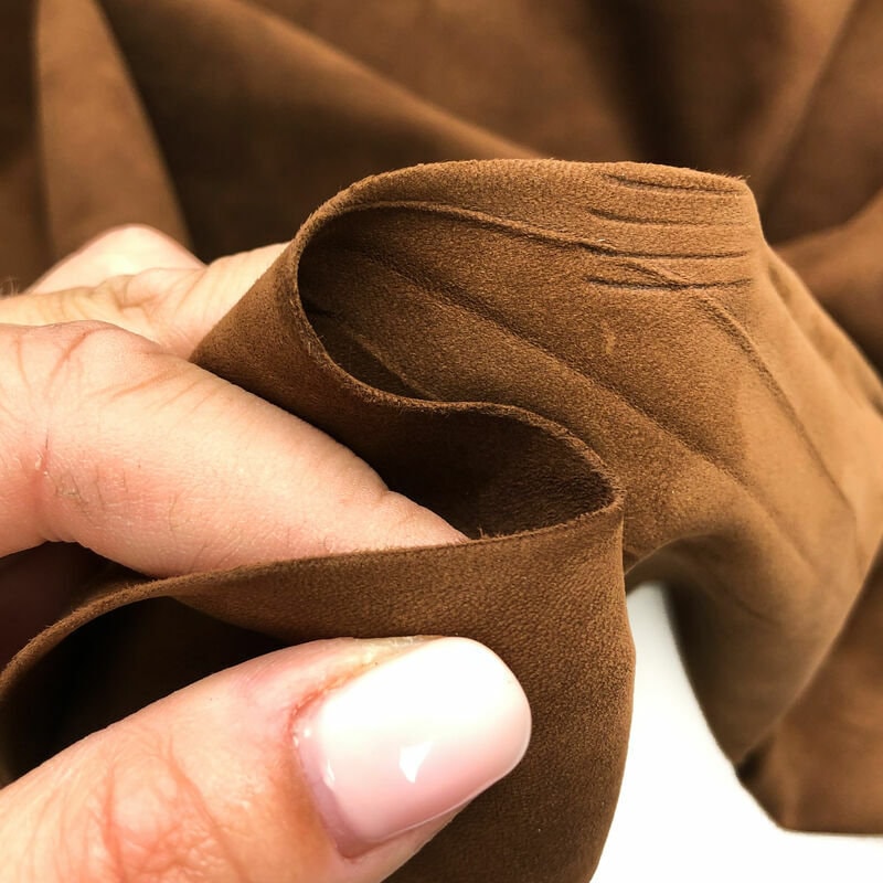 High-quality suede lambskin leather fabric hides in brown color. Soft pieces for your best projects! Our mission is to provide only the best quality Italian leather samples to other leather workers, crafters of all kinds, small businesses or Etsy shop for your own projects.