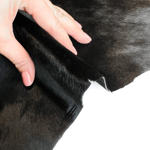 High-quality genuine pony leather fabric hides in shiny black color. Soft fur leather material pieces for your best projects! Our mission is to provide only the best quality Italian leather samples to other leather workers, crafters of all kinds, small businesses, or Etsy shop for your projects.