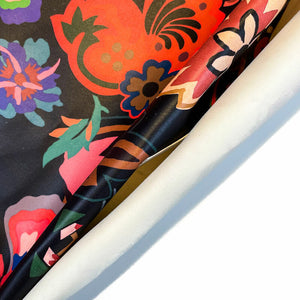 -Leather with flower print. Soft and thick material. Beautiful floral print on black background. White lambskin frame around can also be used.