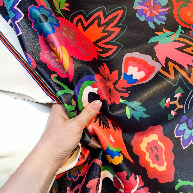 High-quality lambskin leather with flower print. Unique leather hides for your best projects! Our mission is to provide only the best quality Italian leather to other leather workers, crafters of all kinds, small businesses, or Etsy shop for your own projects.