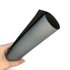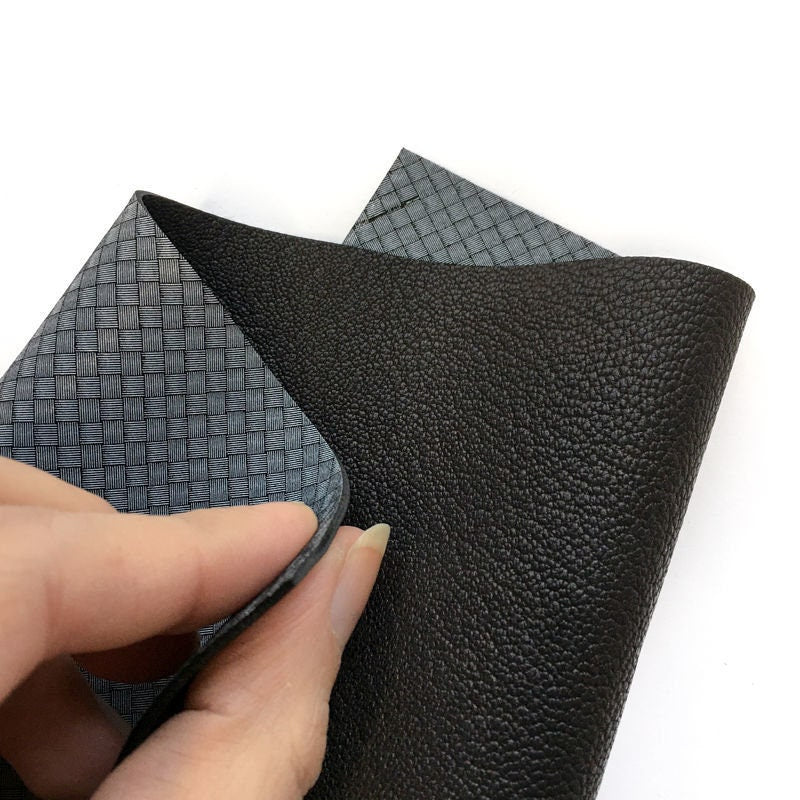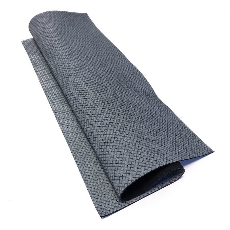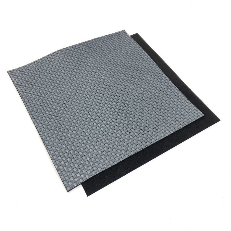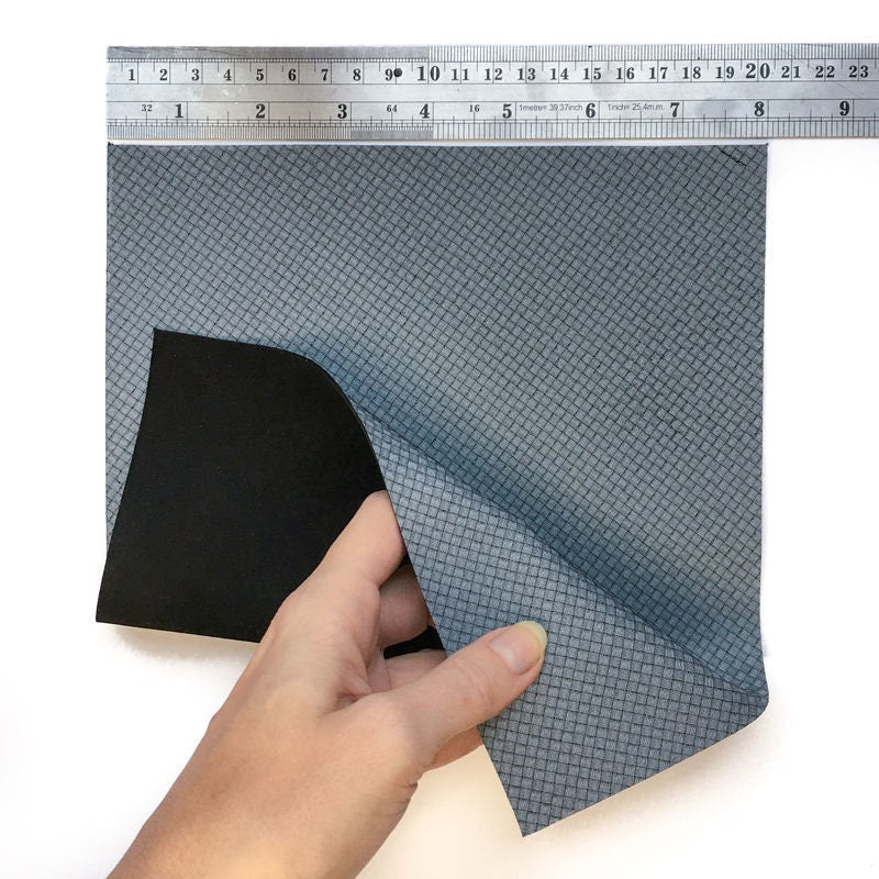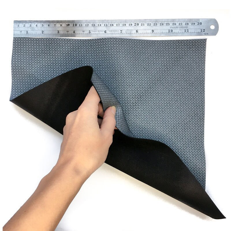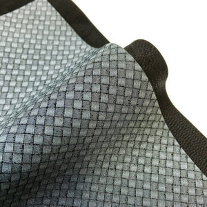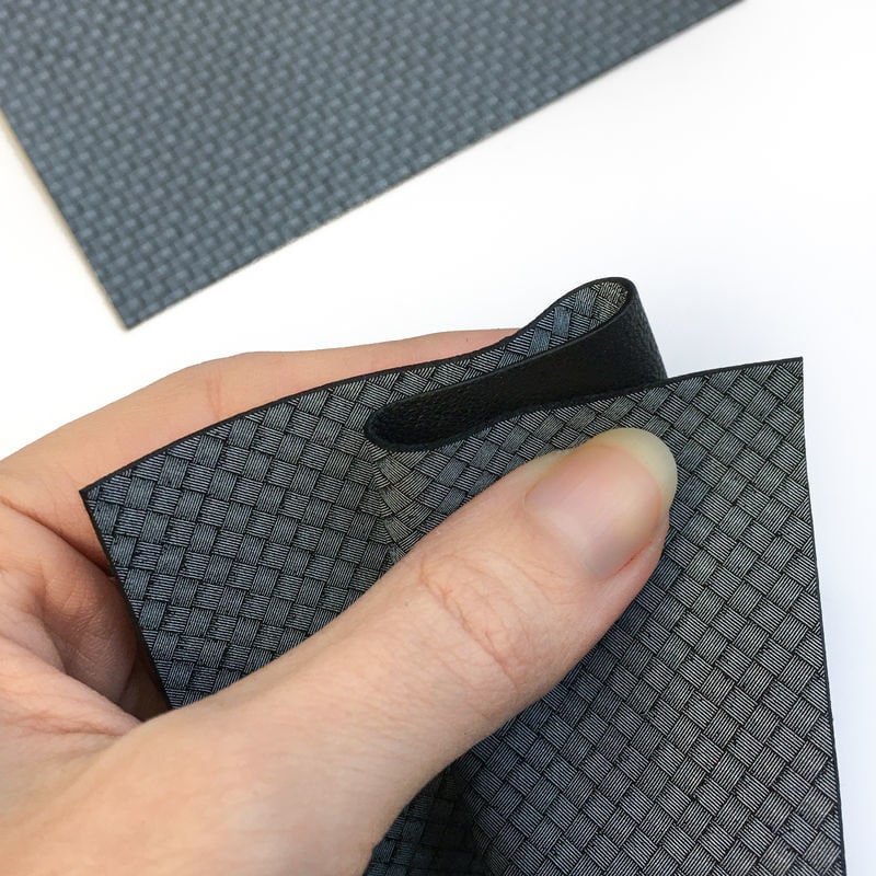 -Gray braided print on genuine lambskin. Fine sieve print on quality black leather. Genuine Leather material for crafts. Italian quality .
