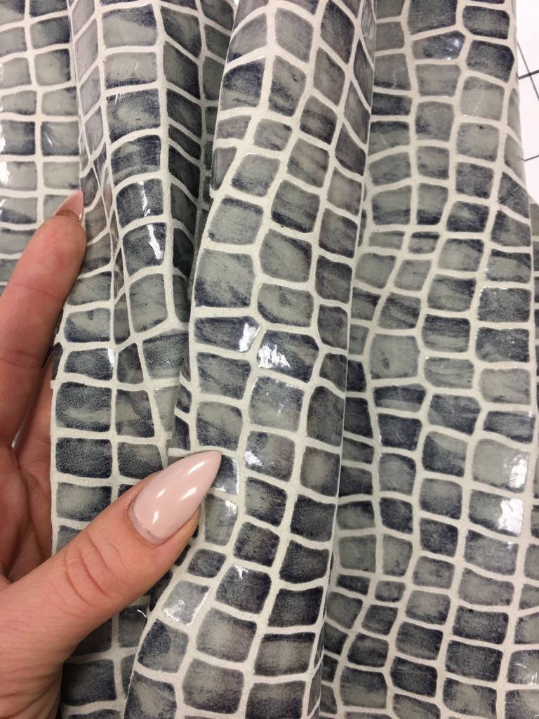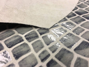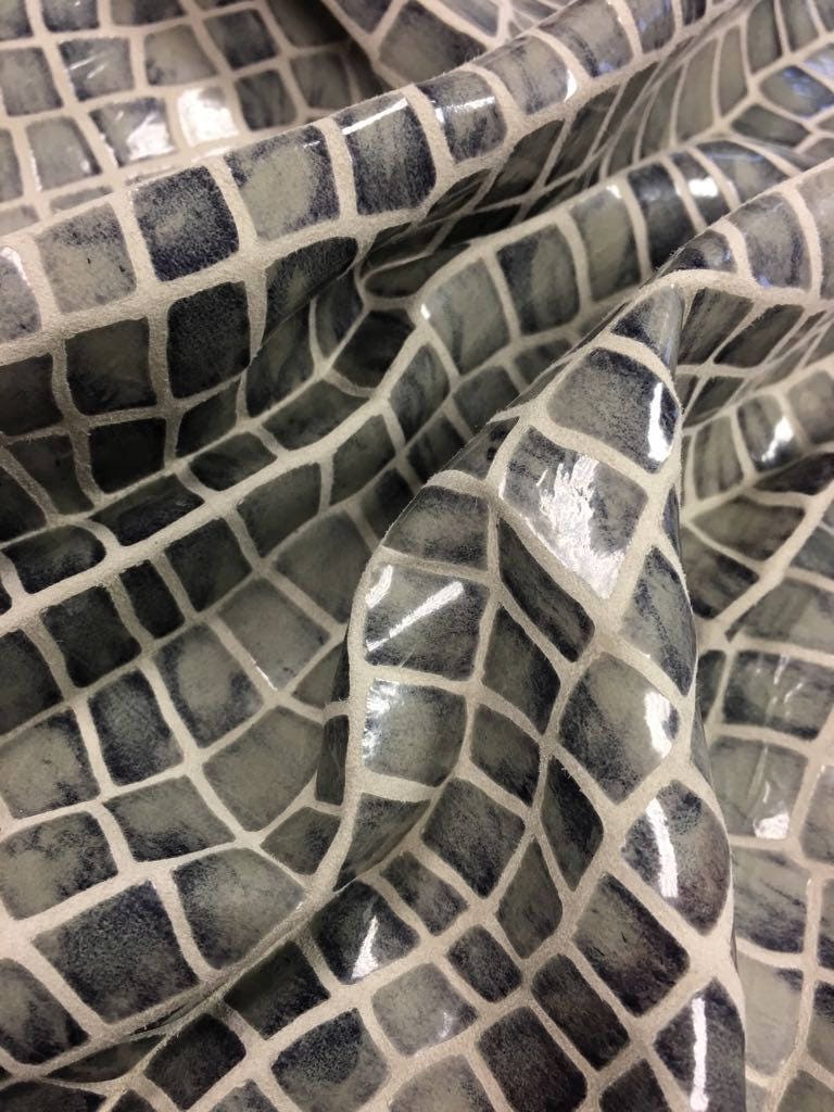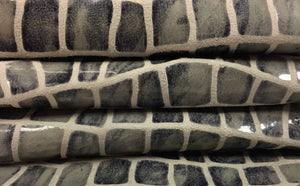 Gray snake leather print gray genuine leather fabric lambskin pelt real gray leather hide gray leather print GRAY SHINY SNAKE 492, 0.5 mm