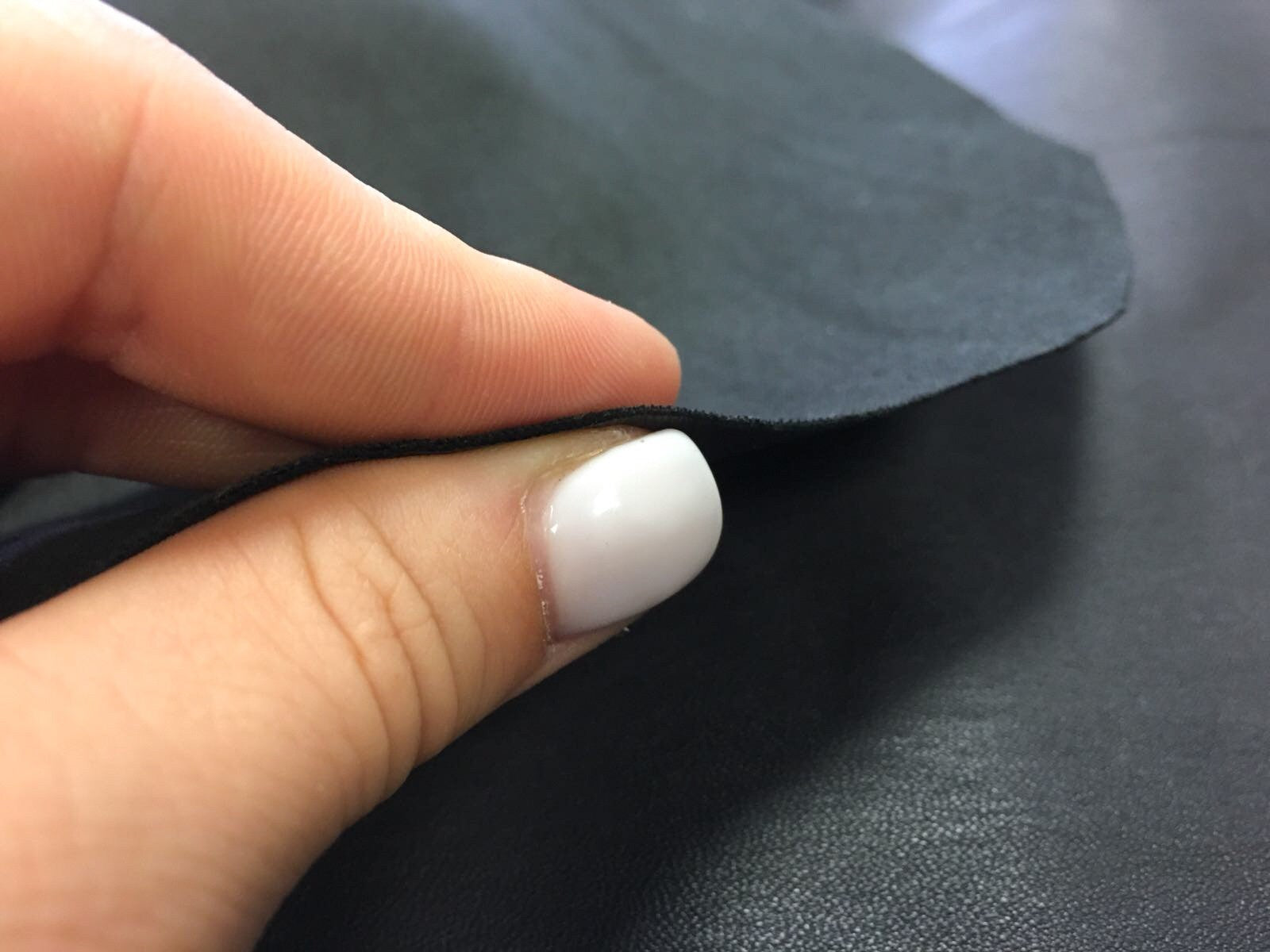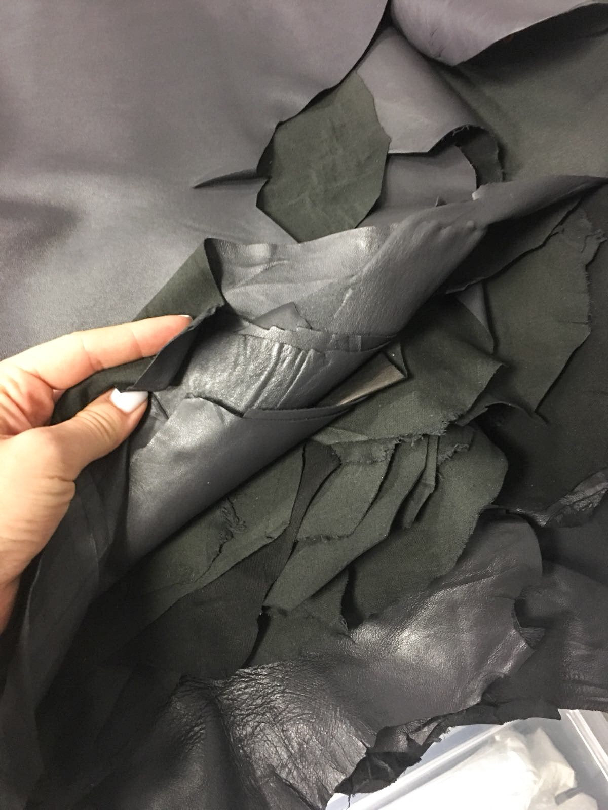 -Gray lambskin leather, Elastic leather fabric, Stretchy sheep skin leather pieces, Tight leather material for pants or grey leather skirt, Skin tight clothing material, Genuine lambskin leather fabric, Nappa leather from one side and cotton fabric layer from the other. Clothes made out of this leather don't need a lining, Material don't make You sweat. Perfect material for skin tight clothing. Just try it and You will fall in love with this one.