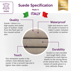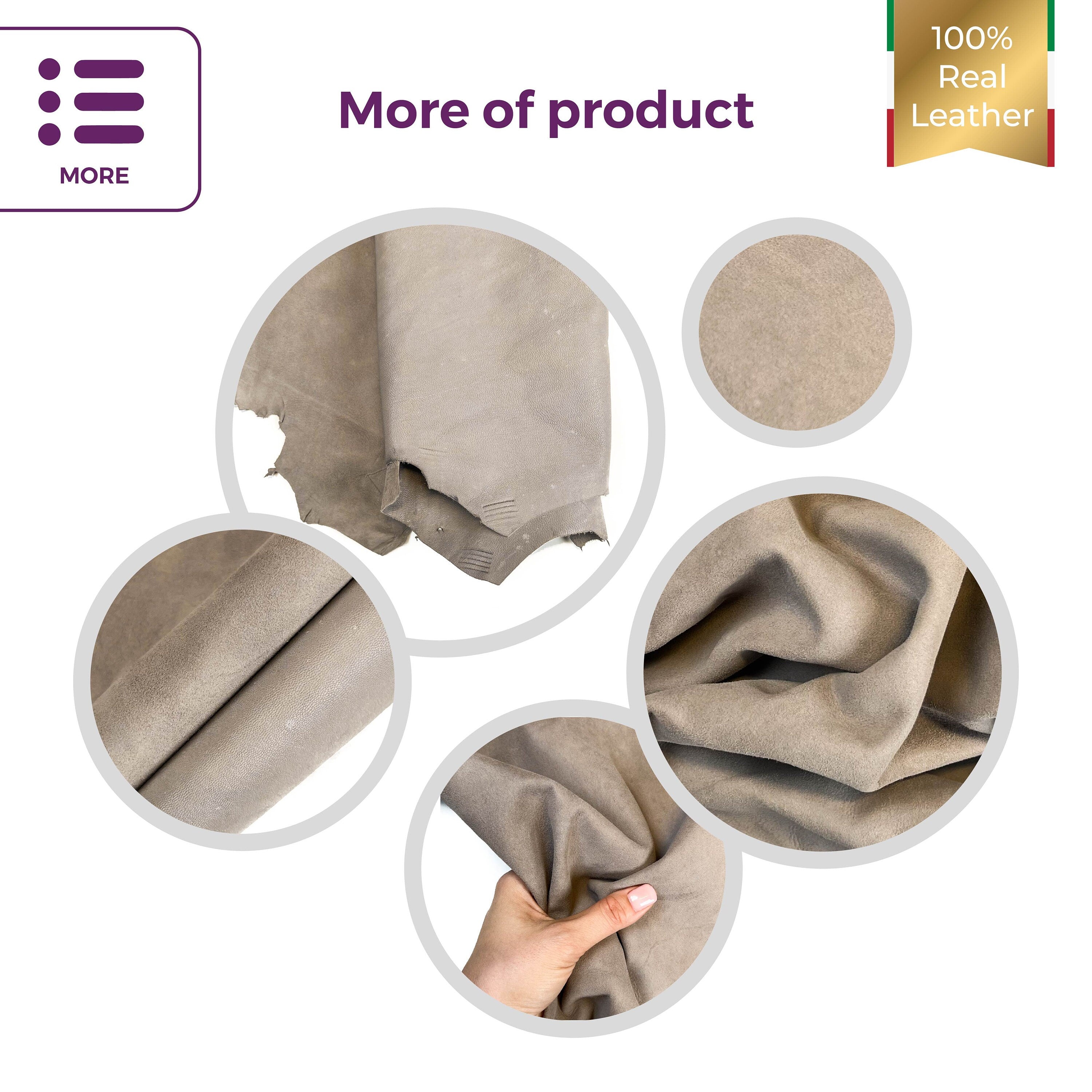 -Light gray suede material is pleasant for touch, really soft. Also Genuine sheep skin sheet is thick enough to make clothing from it. Gray suede leather jacket would be perfect for everyone. Lambskin hide is perfect for handmade earrings, jewelry and other projects. High quality suede fabric from Italy.