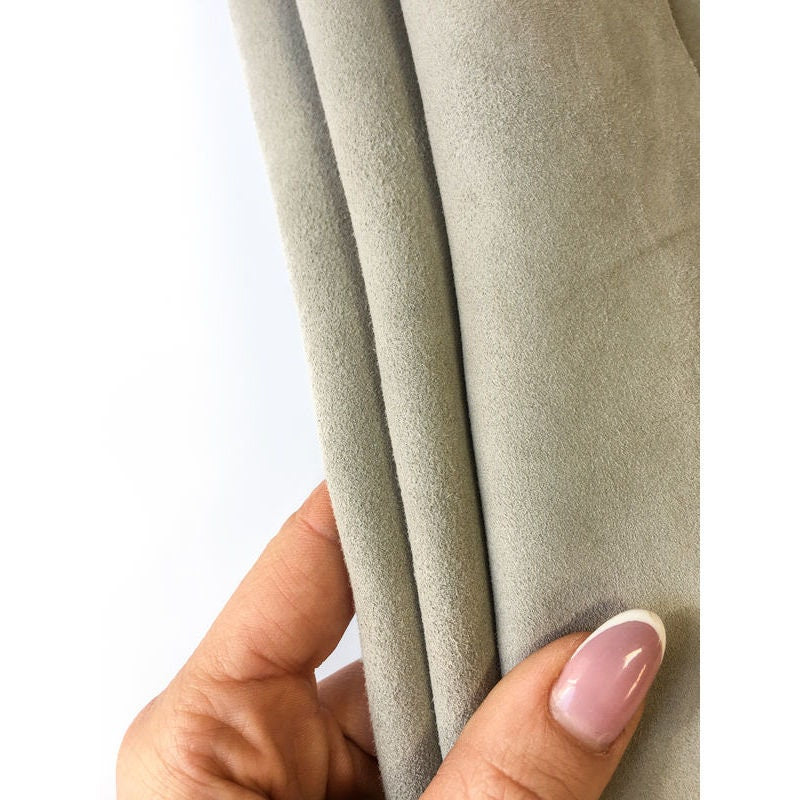 -Smooth suede sheep skin leather fabric, nice and smooth leather top. GRAY velour leather pieces. Soft leather skins. Sell in full hides. Firm and high quality leather pieces.