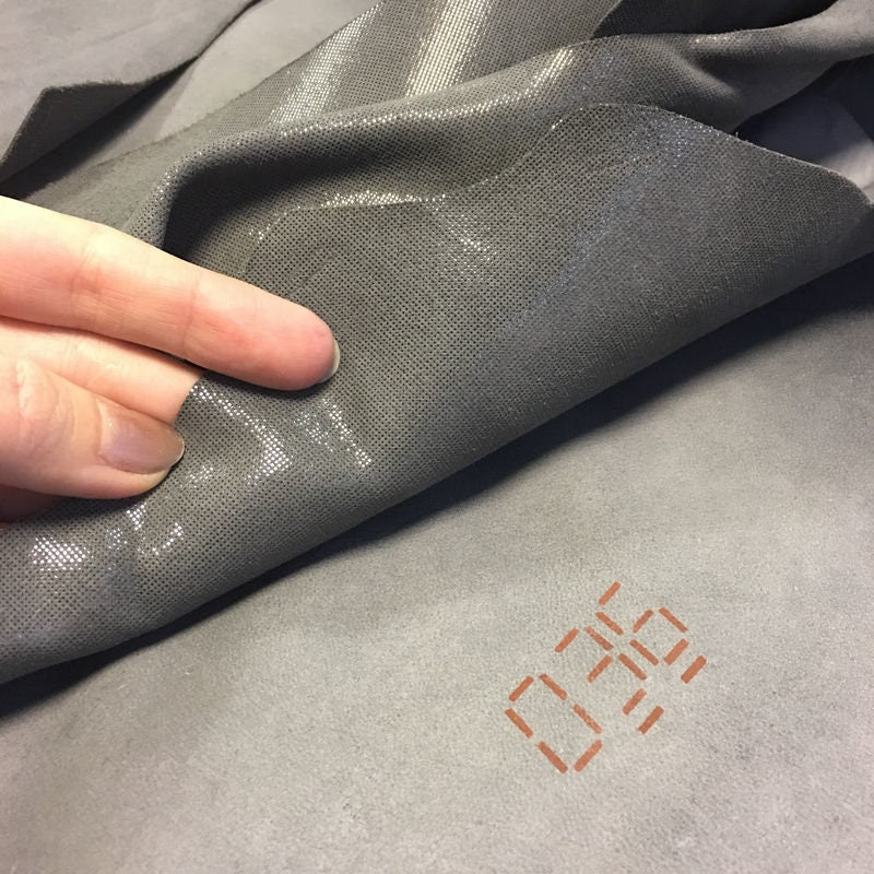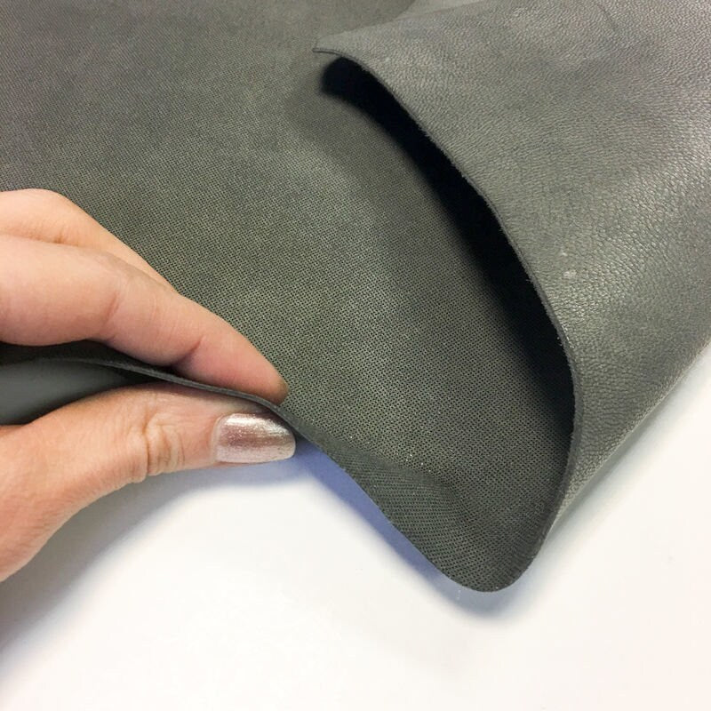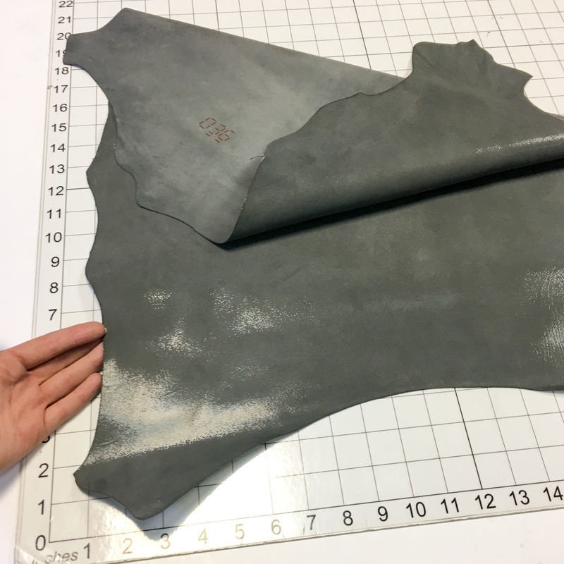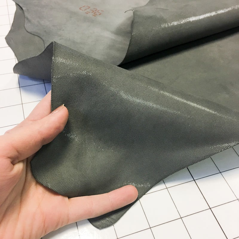 - Gray suede material is really good for cloth sewing, lambskin leather is lightweight, sheepskin hides are super soft and pleasant for touch. Grey genuine suede is good for making earrings, gray jewelry would look amazing. Tiny dot leather print gives it elegant and luxury look. Gray suede skirt, gray leather top, or even sparkly, yet classic gray leather jacket - this is perfect leather for You.