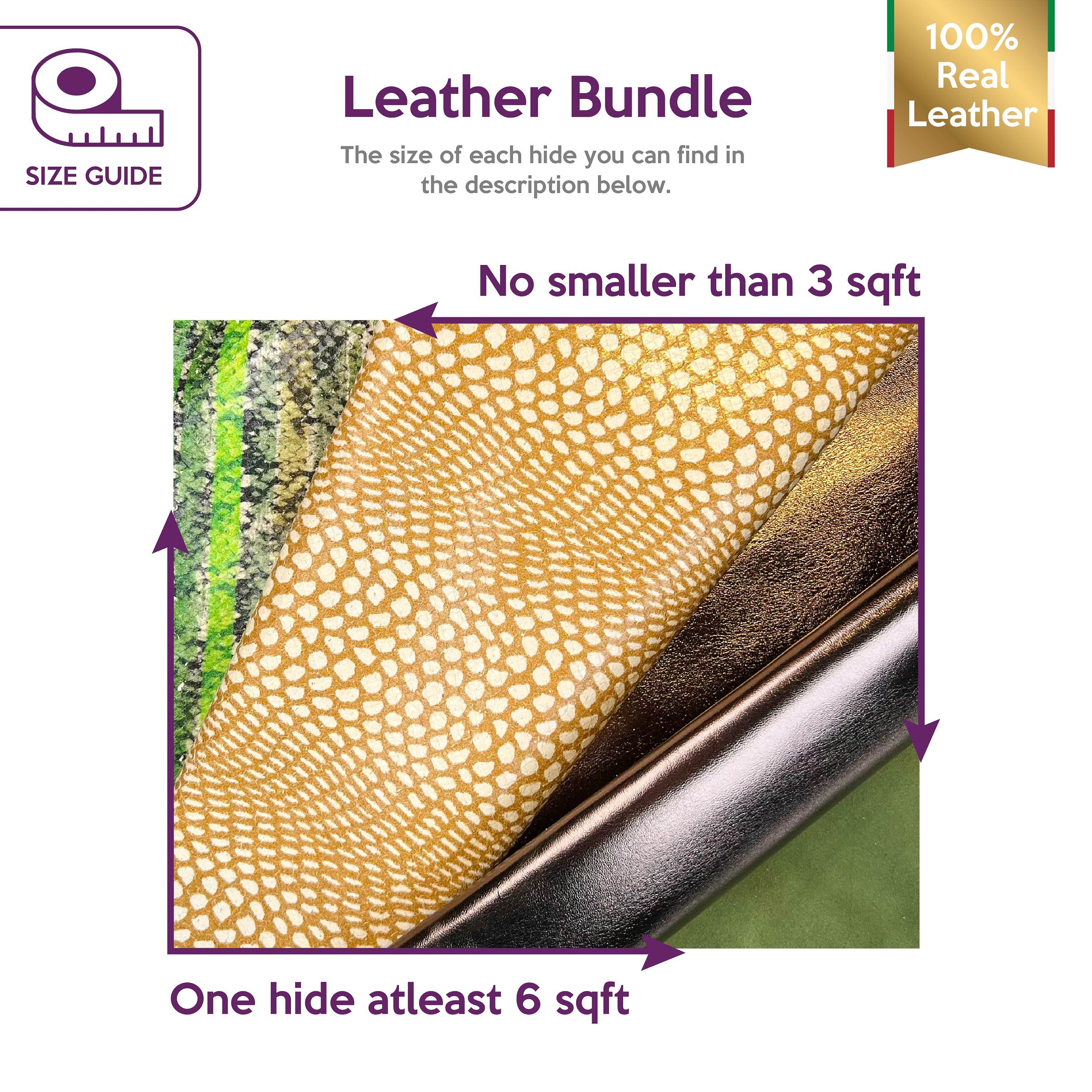 Four different leather pieces as pictures. Each hide's size is different. Amazing and gorgeous material for your best projects! Our mission is to provide only the best quality Italian leather samples to other leather workers, crafters of all kinds, small businesses, or Etsy shops for your own projects.