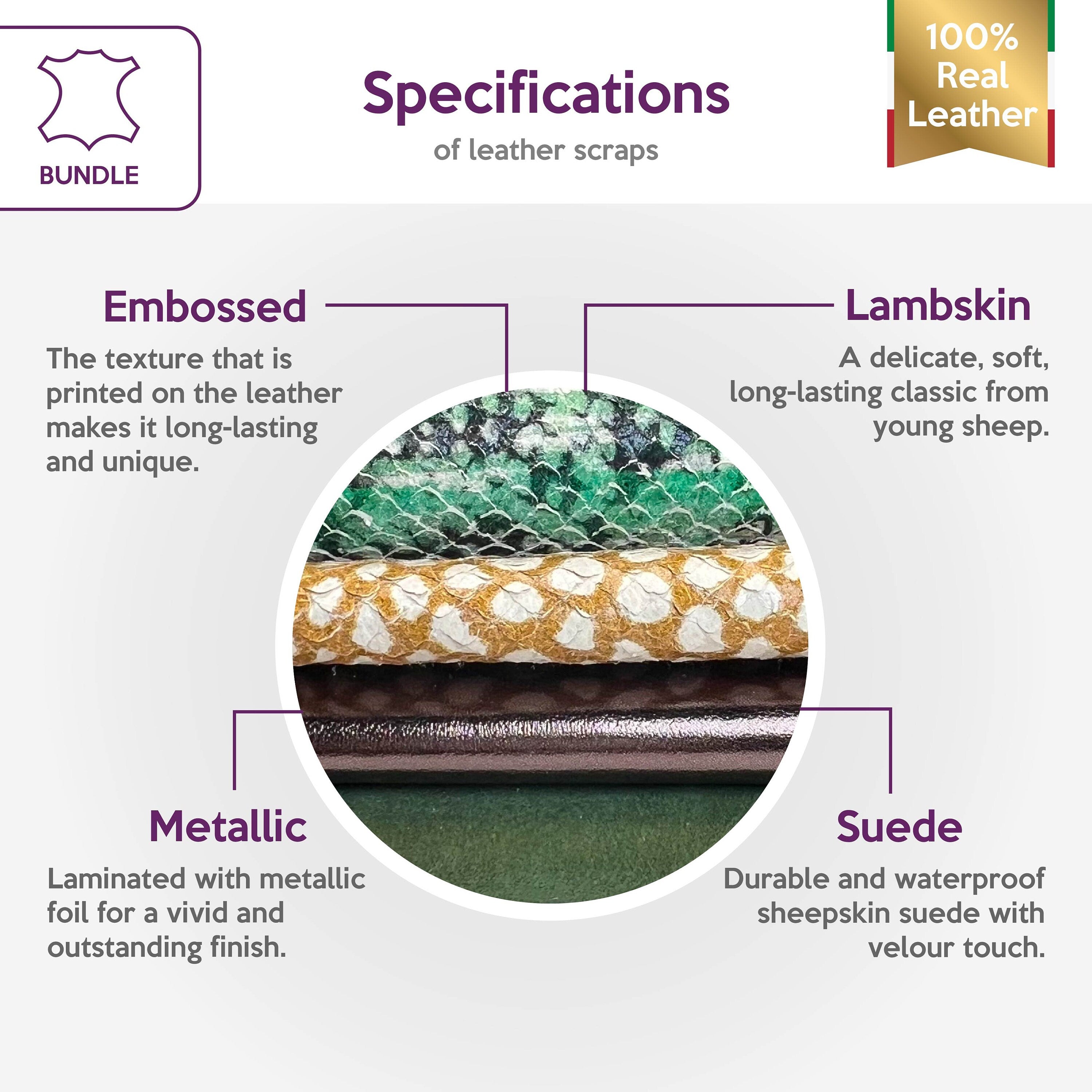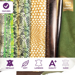 High-quality lambskin leather bundle of 4. Includes the softest sheepskin leather, beautiful metallics, and unique suede.