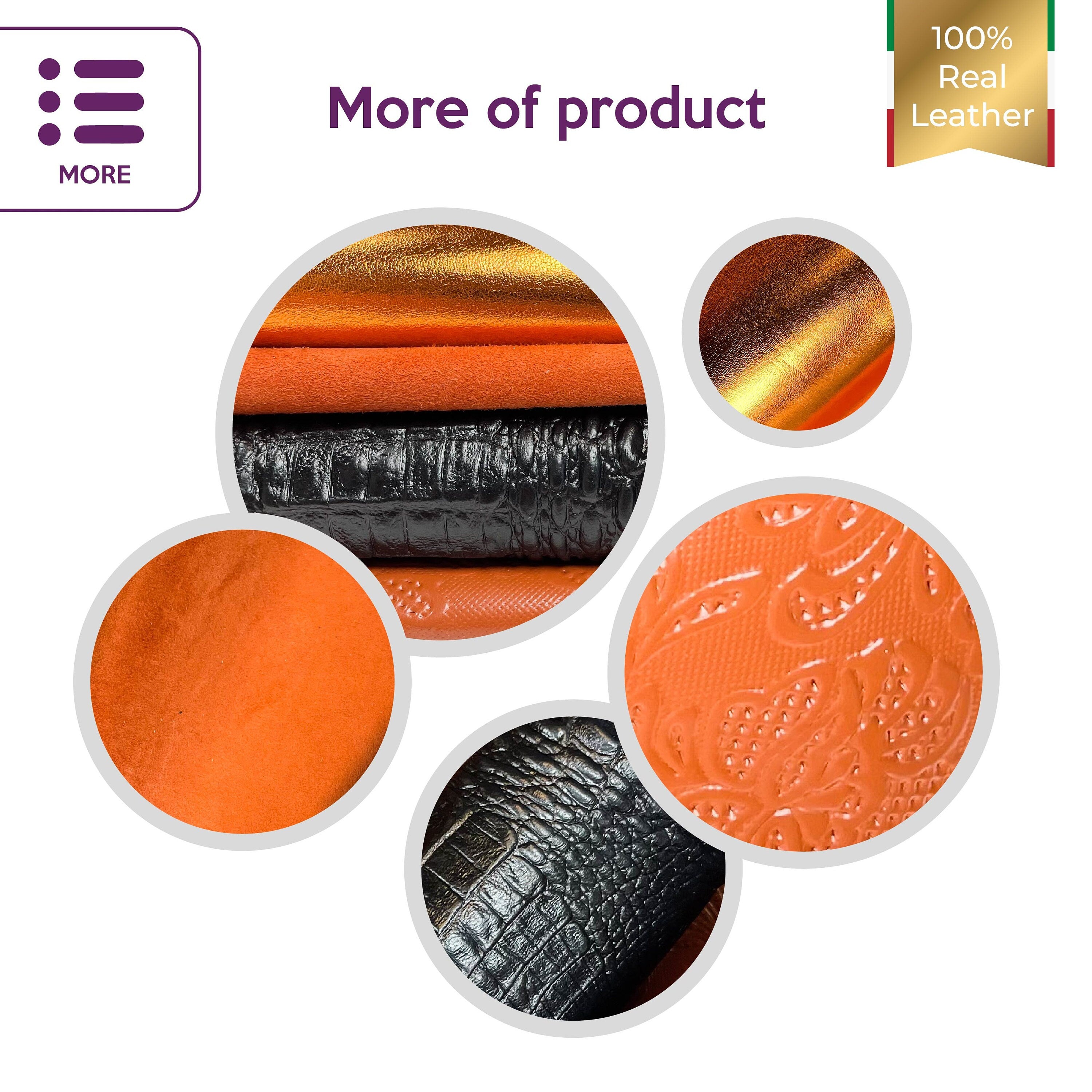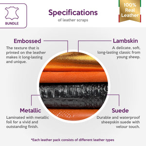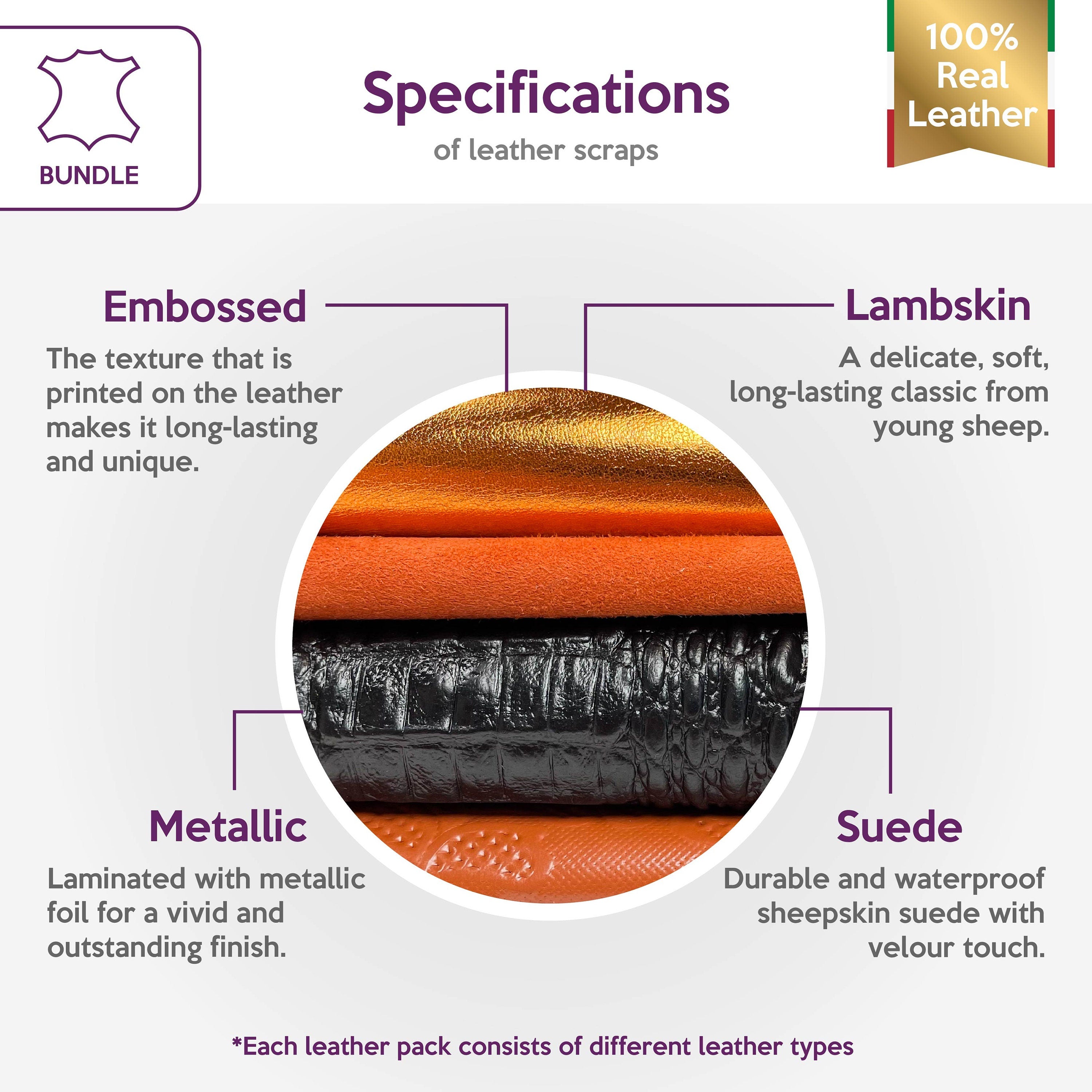 High-quality lambskin leather bundle of 4. Includes the softest sheepskin leather, the brightest metallic, and unique embossing.