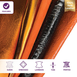 Halloween Theme Lambskin Leather Bundle of 4 Italian Skins 0.5-1.0mm / 1.25-2.5oz