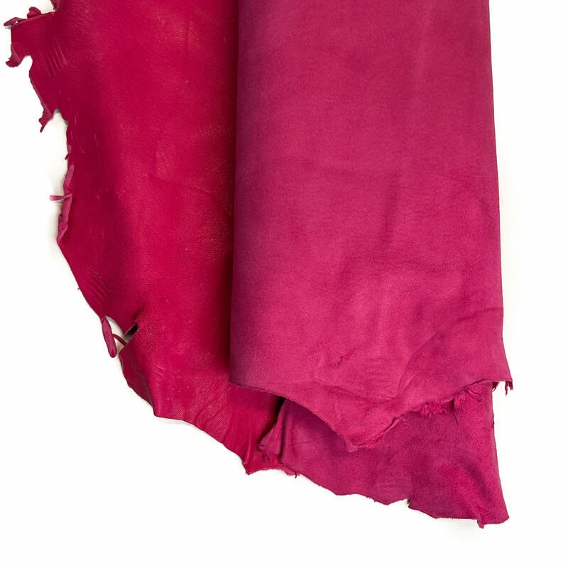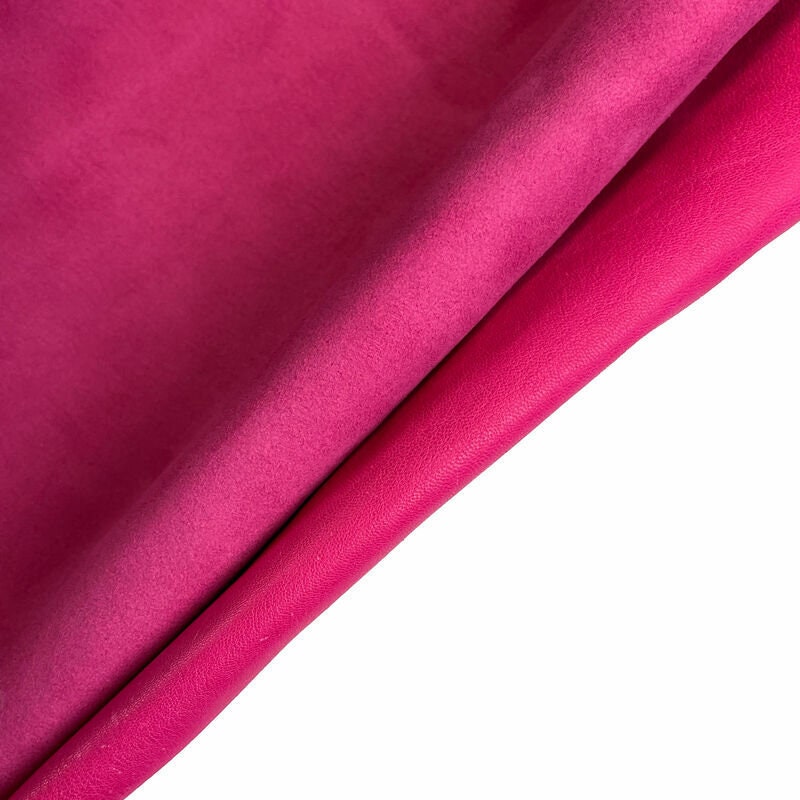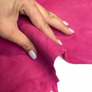- Soft suede leather pieces in bright pink color. Natural lambskin hides from the best Italian tannery. Perfect leather for sewing. Soft light baby pink leather for all of your projects!