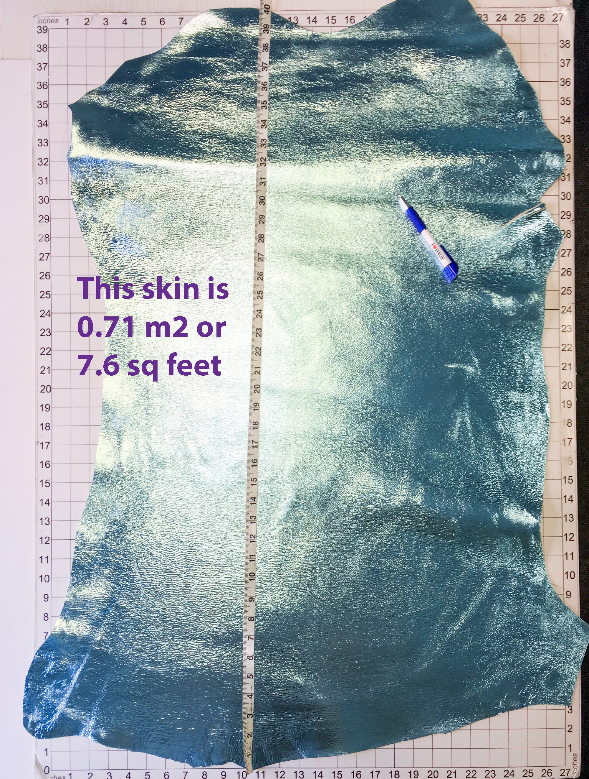 -Keep in mind that dimensions (square footage, square meters) on LEATHER refers to total workable surface area as hide shape is not consistent, so if this is the first time you buy genuine leather don`t be confused with measurements, for example 9 sqf DON`T mean 3 sqf of length x 3 sqf of wide.