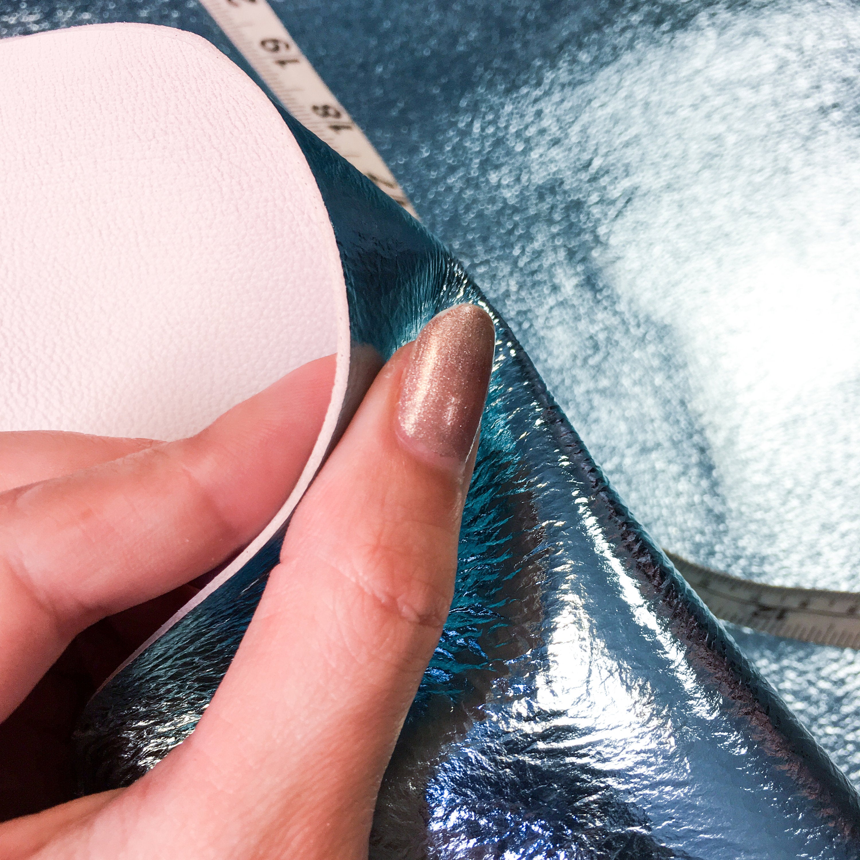 High-quality lambskin leather fabric hides in a beautiful metallic light blue color. Metallic shine all over the leather! Our mission is to provide only the best quality Italian leather samples to other leather workers, crafters of all kinds, small businesses or Etsy shop for your own projects.