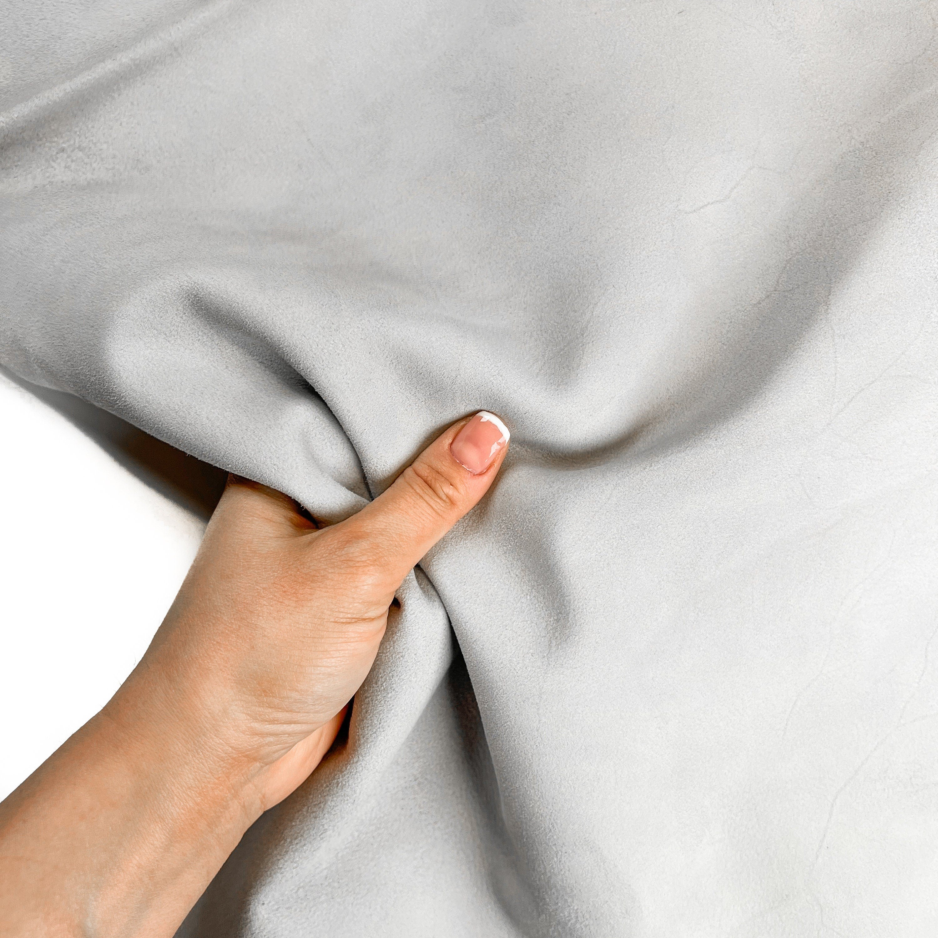 GRAY genuine suede fabric, gray genuine sheep fabric, grayish natural lamb skin, light gray genuine leather pieces, MICRO CHIP, 222, 1.0 mm