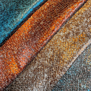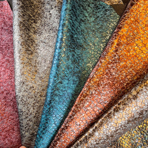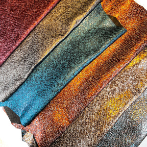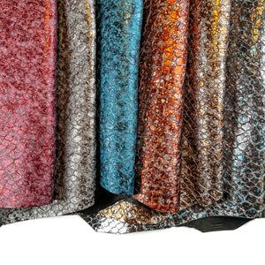 High-quality lambskin leather hides with mermaid print. Shiny metallic leather with animal print for your best projects! Our mission is to provide only the best quality Italian leather samples to other leather workers, crafters of all kinds, small businesses or Etsy shop for your own projects.
