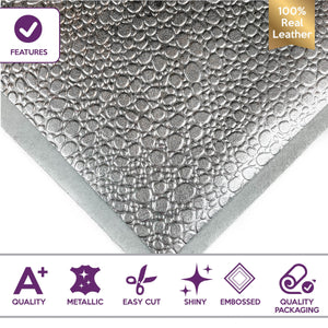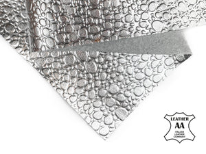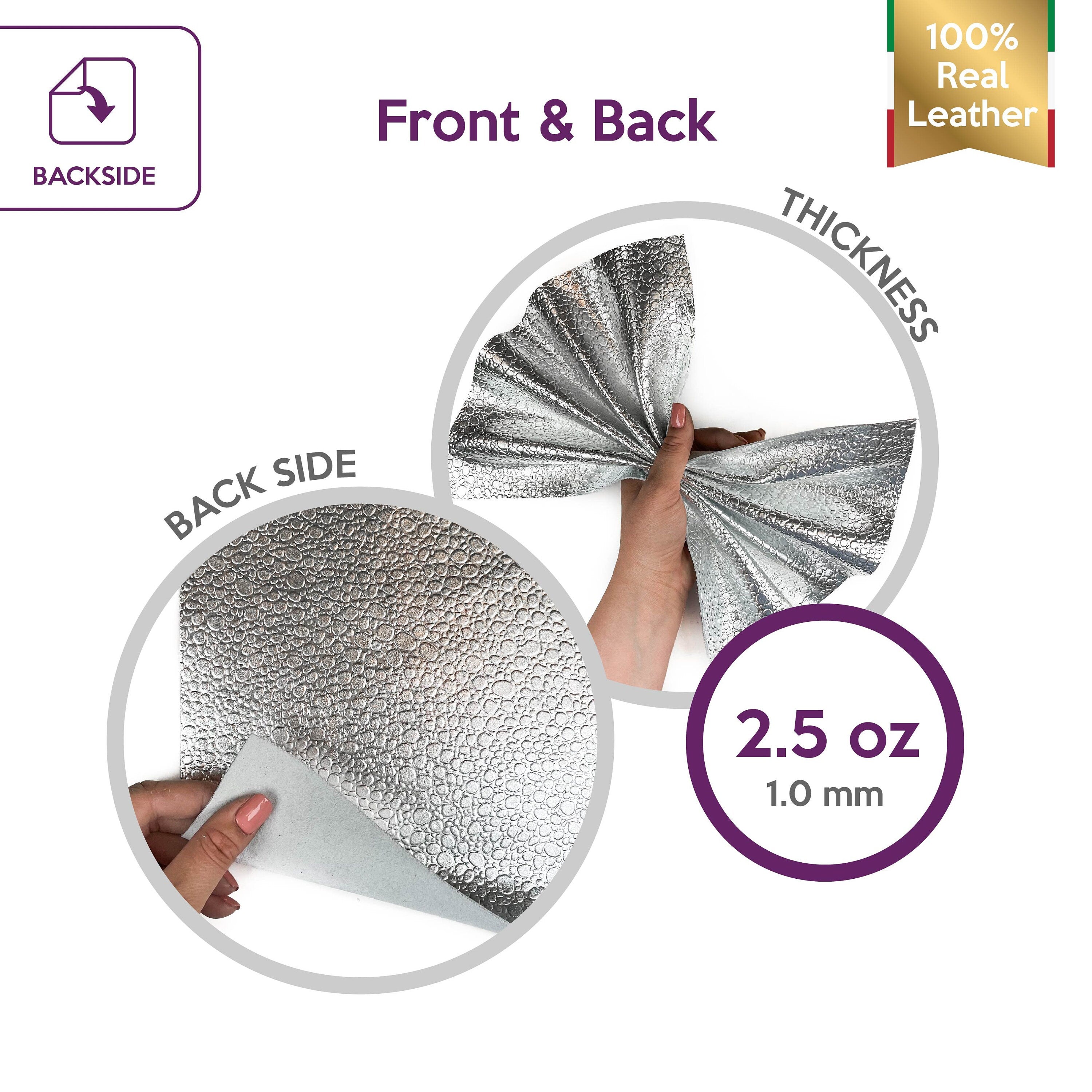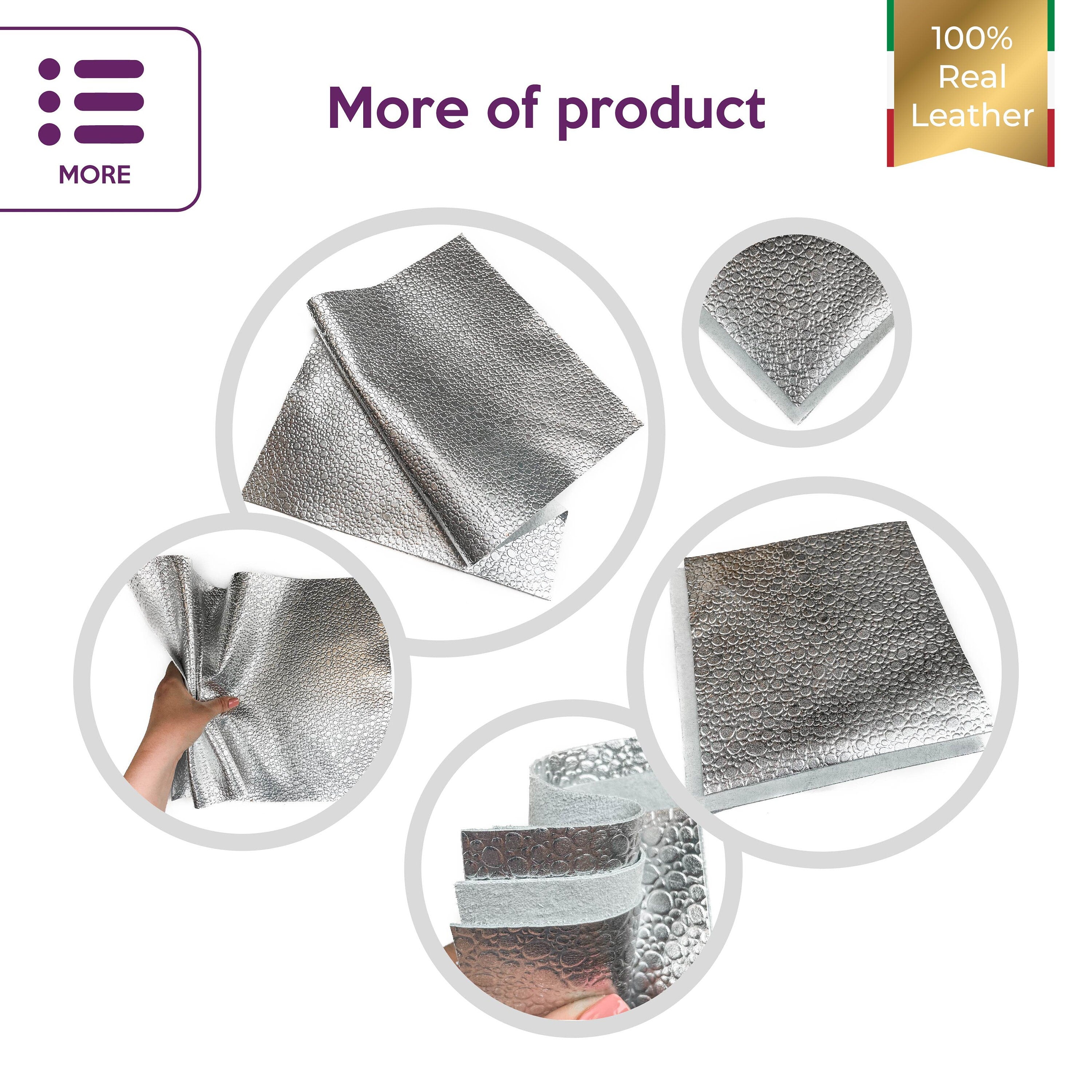 -Silver leather fabric sheets with rain drop print. Genuine animal leather scraps. Shiny earring supplies. 100% Italian Leather. Very easy to work with. Magnetic shine for your crafts!