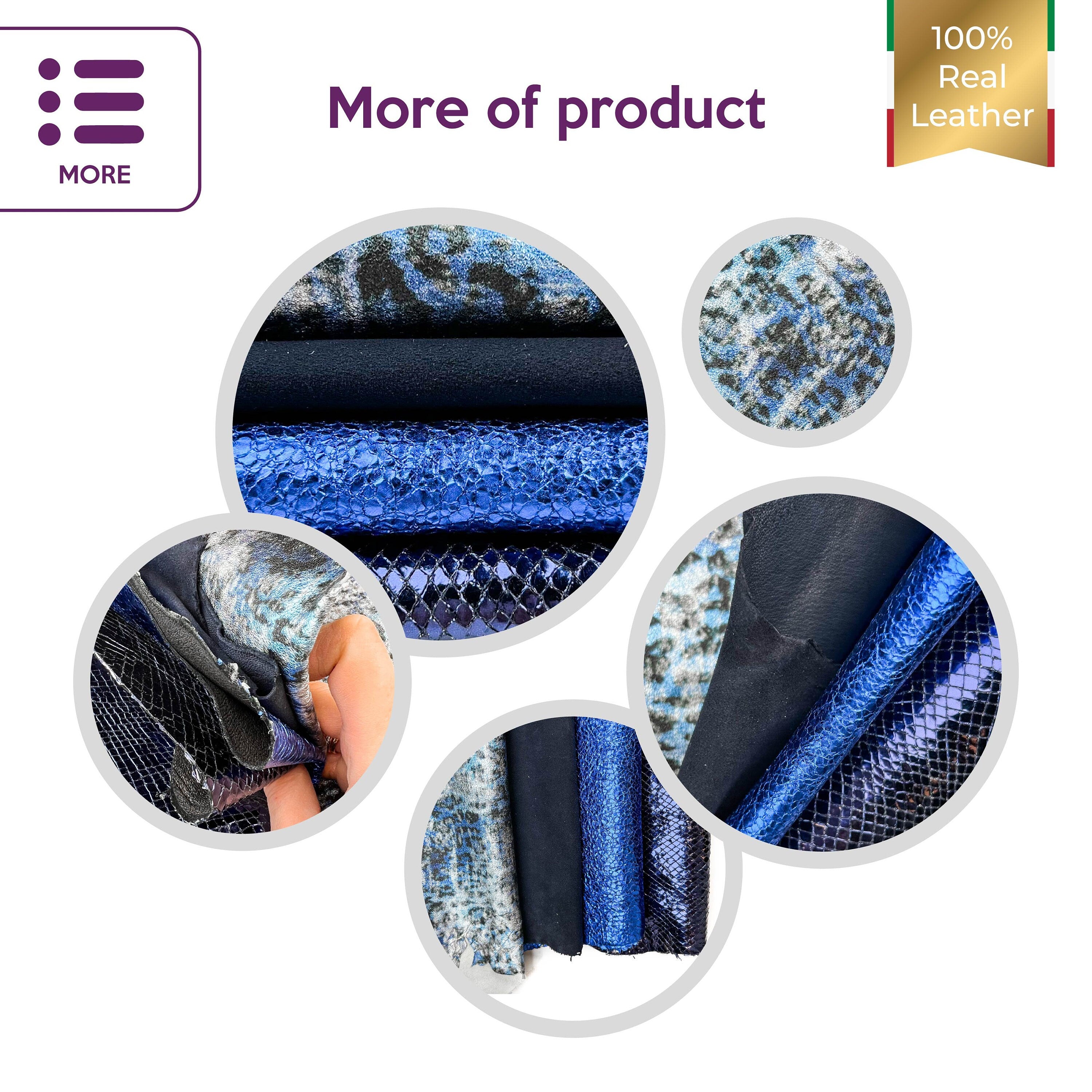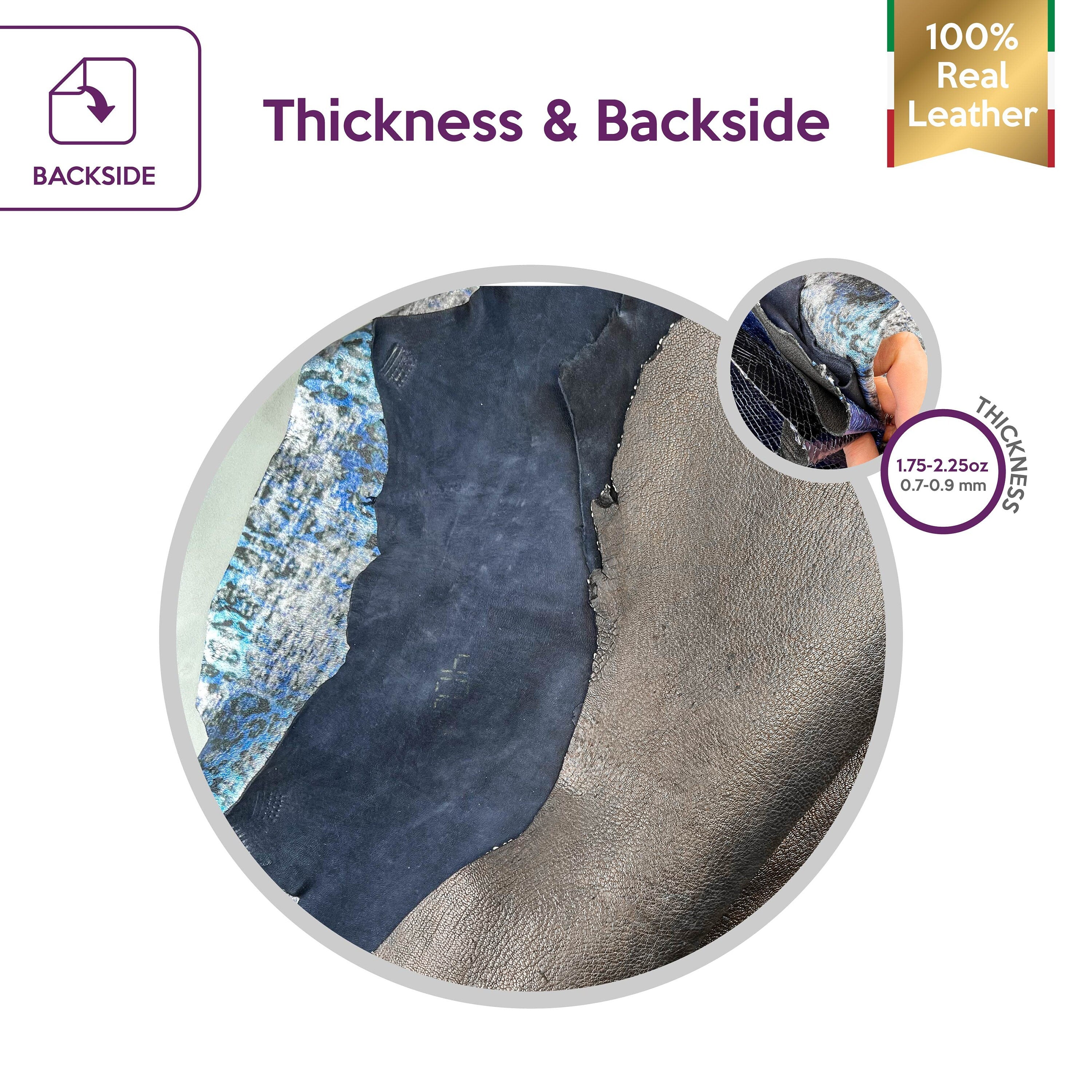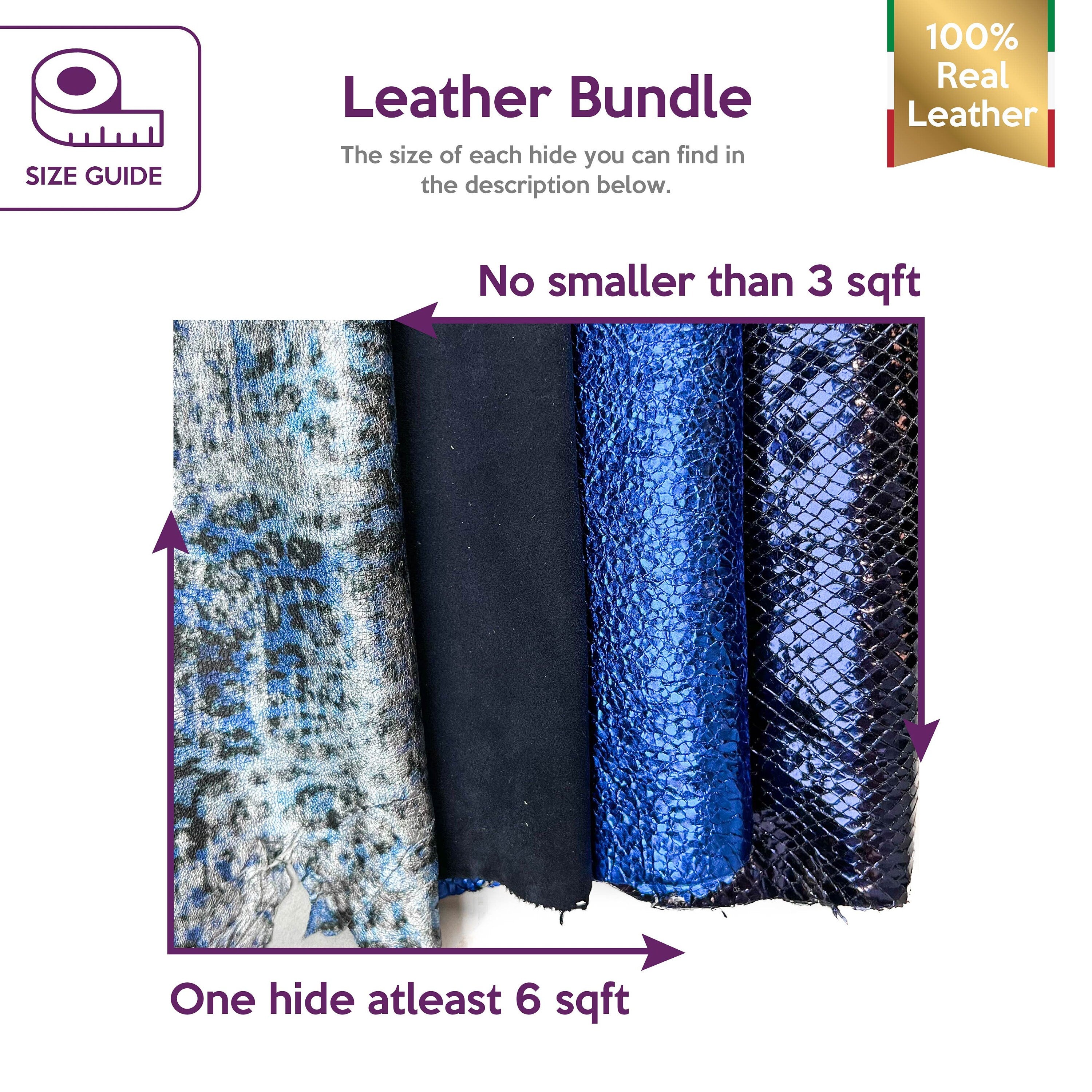 Four different leather pieces as pictures. Each hide's size is different. Unique and gorgeous material for your best projects! Our mission is to provide only the best quality Italian leather samples to other leather workers, crafters of all kinds, small businesses, or Etsy shops for your own projects.