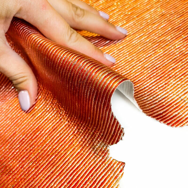 High-quality lambskin leather with embossed lines and silver sparkles. Metallic leather with printed lines all over for your best projects! Our mission is to provide only the best quality Italian leather...