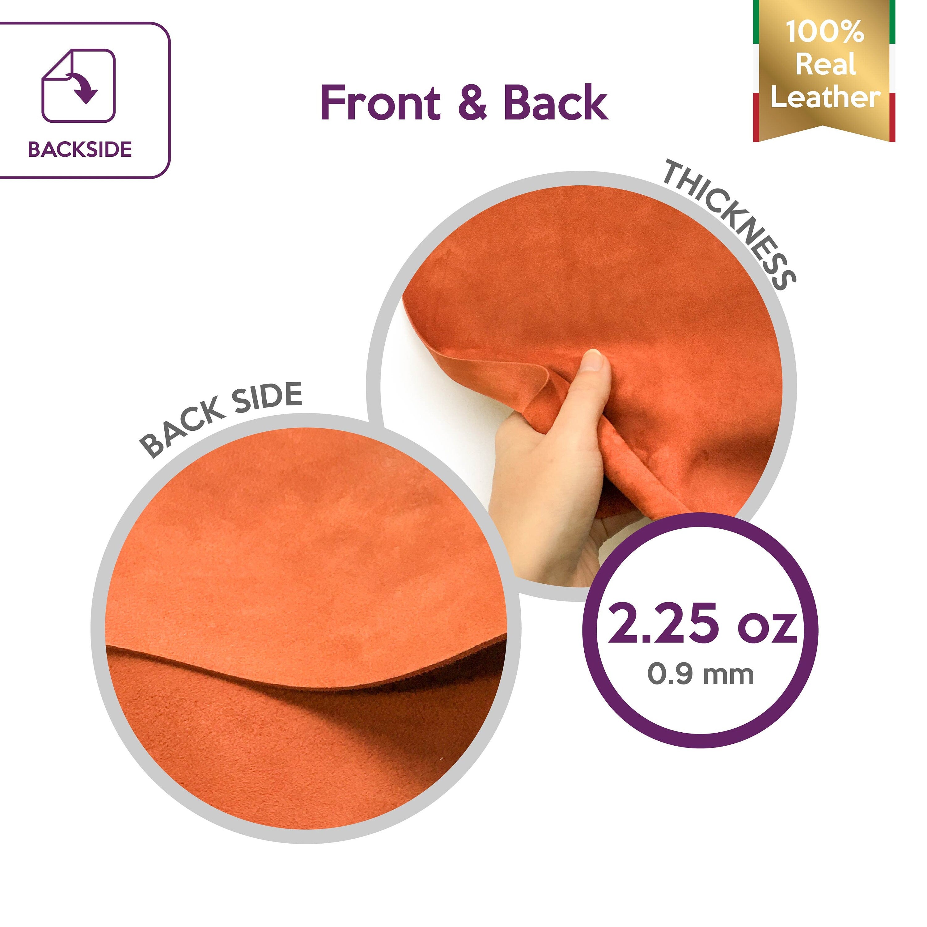 ORANGE Suede Leather (size) Sheets Genuine Leather Material Scraps Soft Velour 2.25oz/0.9mm Brick Orange Lambskin Pieces PICANTE 861