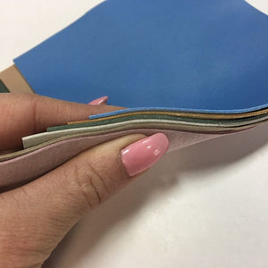 Pastel leather scraps FREE SHIPPING mix of pre-cut real leather fabric pieces 5x5 inches (12.5x12.5cm) colorful genuine leather sample pack 6 pieces of high quality Italian pastel color leather pieces. Selection can vary from pictures included as our stock is changing.