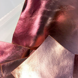Shiny pink metal Leather Scraps, thin rose leather sheets.