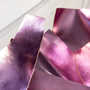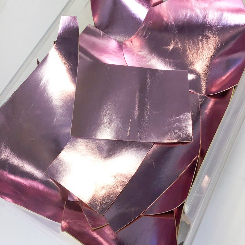 *Our Scrap packs are perfect for designers looking for lightweight leather for leather jewelry with pink glamorous look, small leather goods, and shiny pieces on handbags, also pink leather tassels. Feel free to contact for more information.