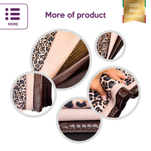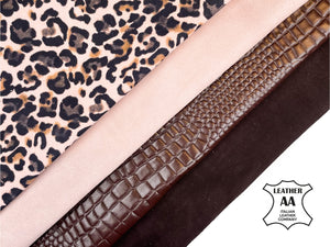 Pink Brown Lambskin Printed Leopard CrocodileLeather Bundle of 4 full hides