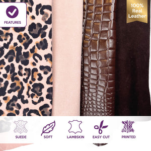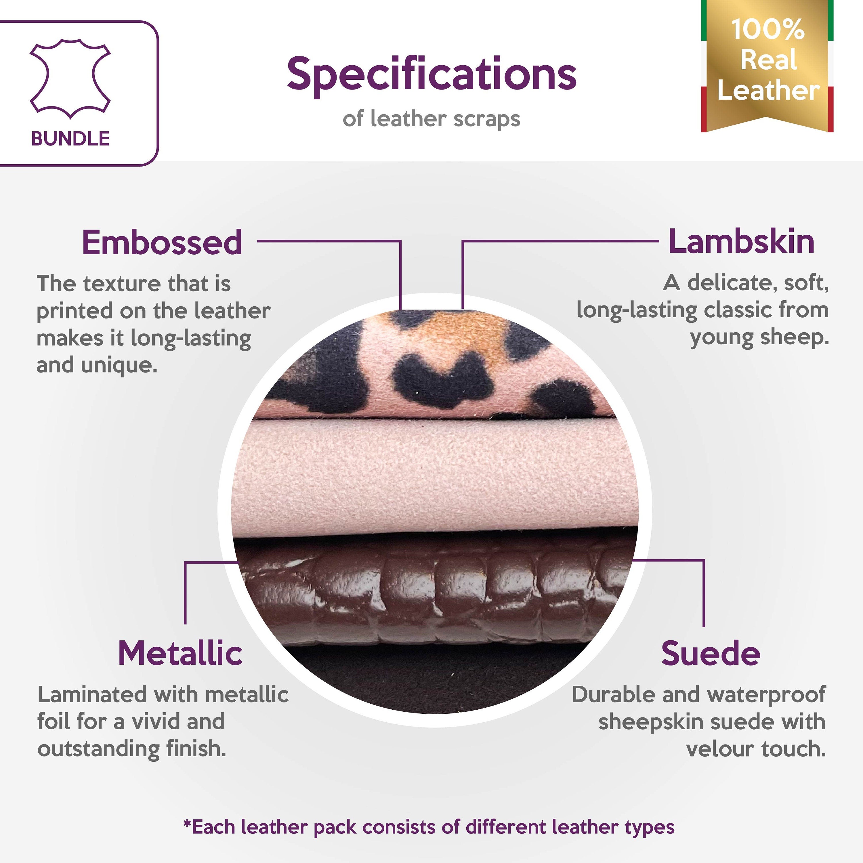 High-quality lambskin leather bundle of 4. Includes the softest sheepskin leather, the brightest lambskin, and unique embossing.