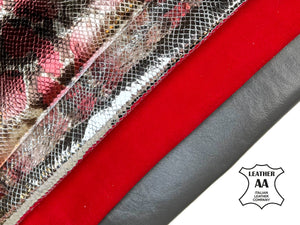 Red Snake Gray Lambskin Red Suede Silver Bundle of 4 Premium Italian Skins / FREE Express Delivery Included /2 - 7.3 sqft /1 oz - 3 oz