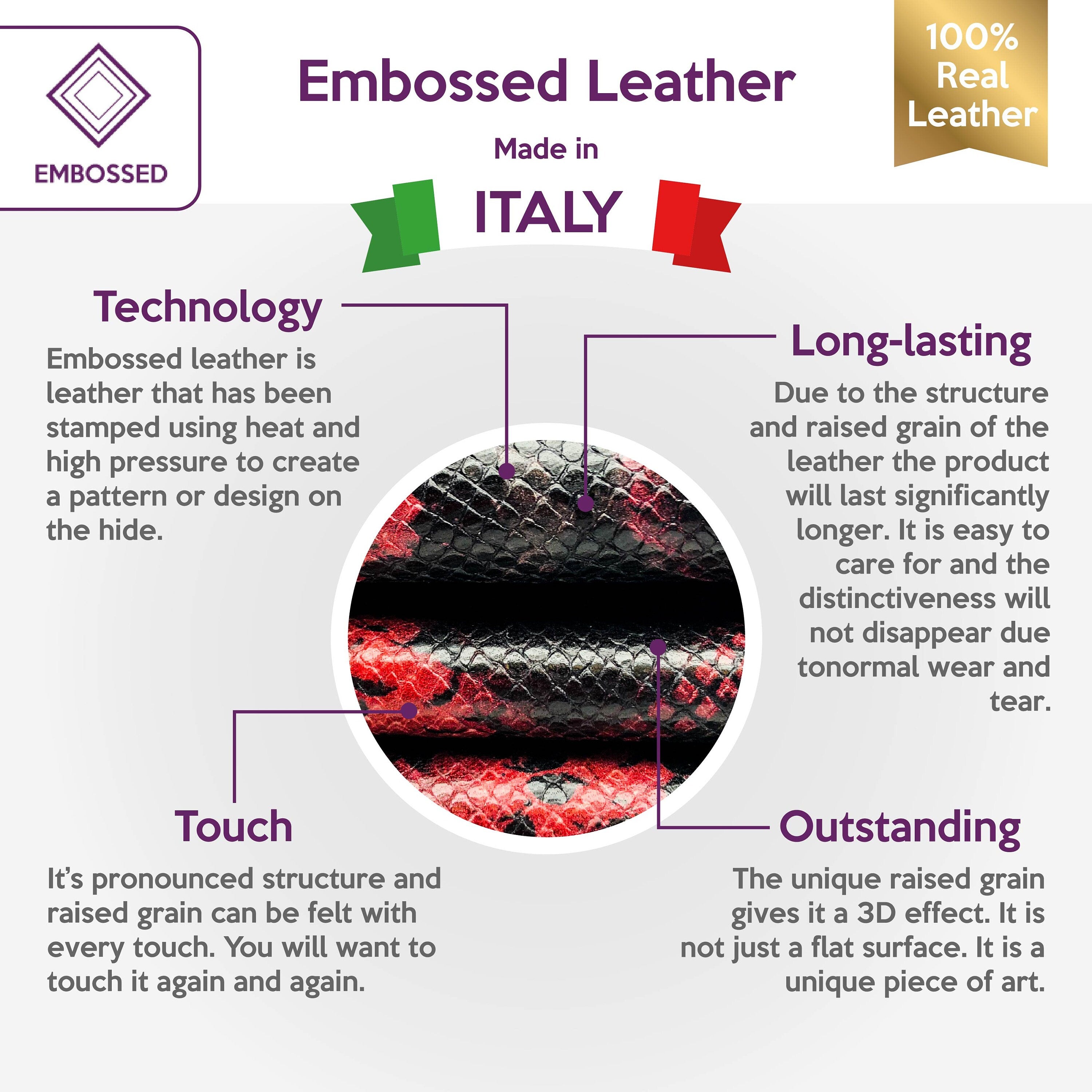 High-quality lambskin leather sheets with snake print. Classic pieces with elegant polished snake texture for your best projects! Our mission is to provide only the best quality Italian leather samples to other leather workers, crafters of all kinds, small businesses or Etsy shop for your own projects.