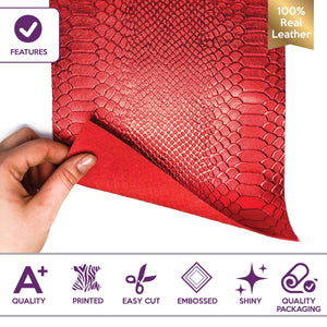 - Red leather pieces with snake texture. Leather scraps are quite thick and will definitely hold it's form. Sheets are shiny polished. Leather will be perfect for all kind of DIY jewelry. High quality Italian lambskin.