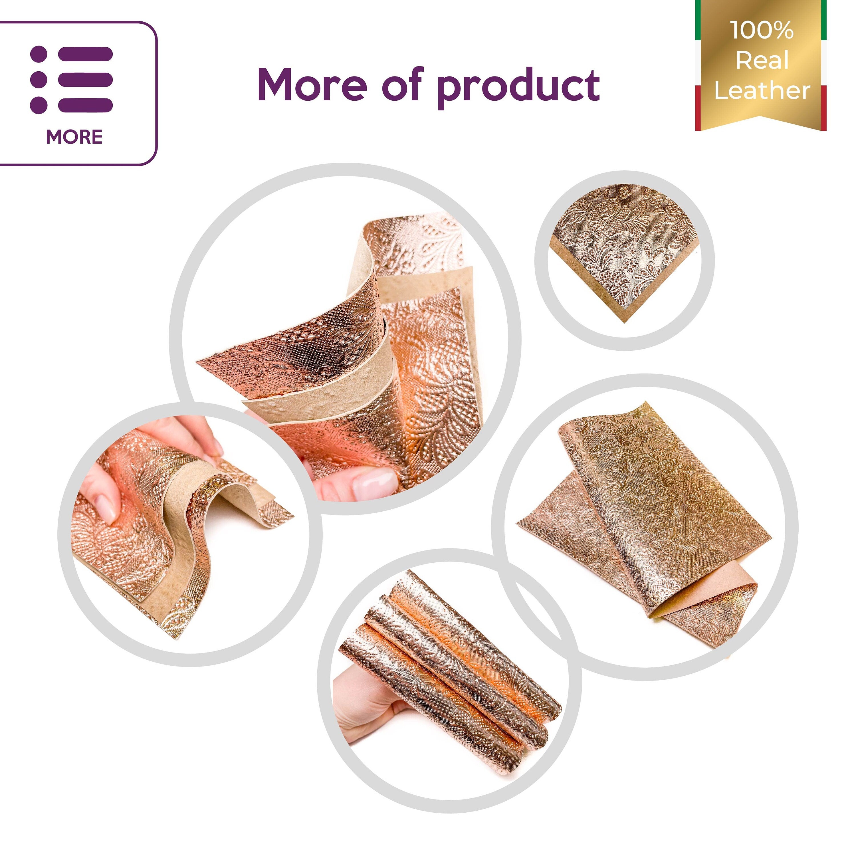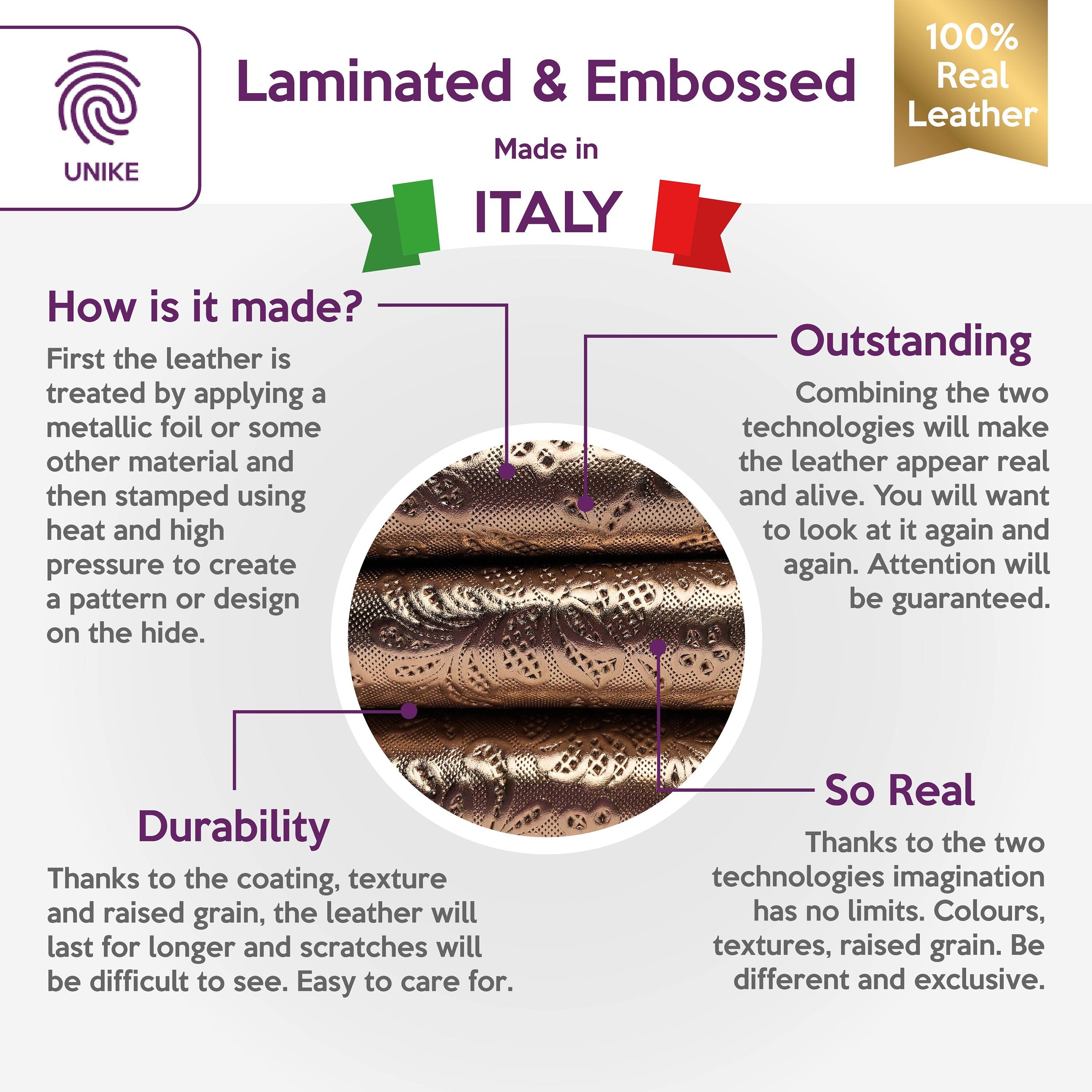 High-quality lambskin patent leather fabric hides in rose gold color for your best projects! Beautiful embossed flowers all over the leather. Our mission is to provide only the best quality Italian...