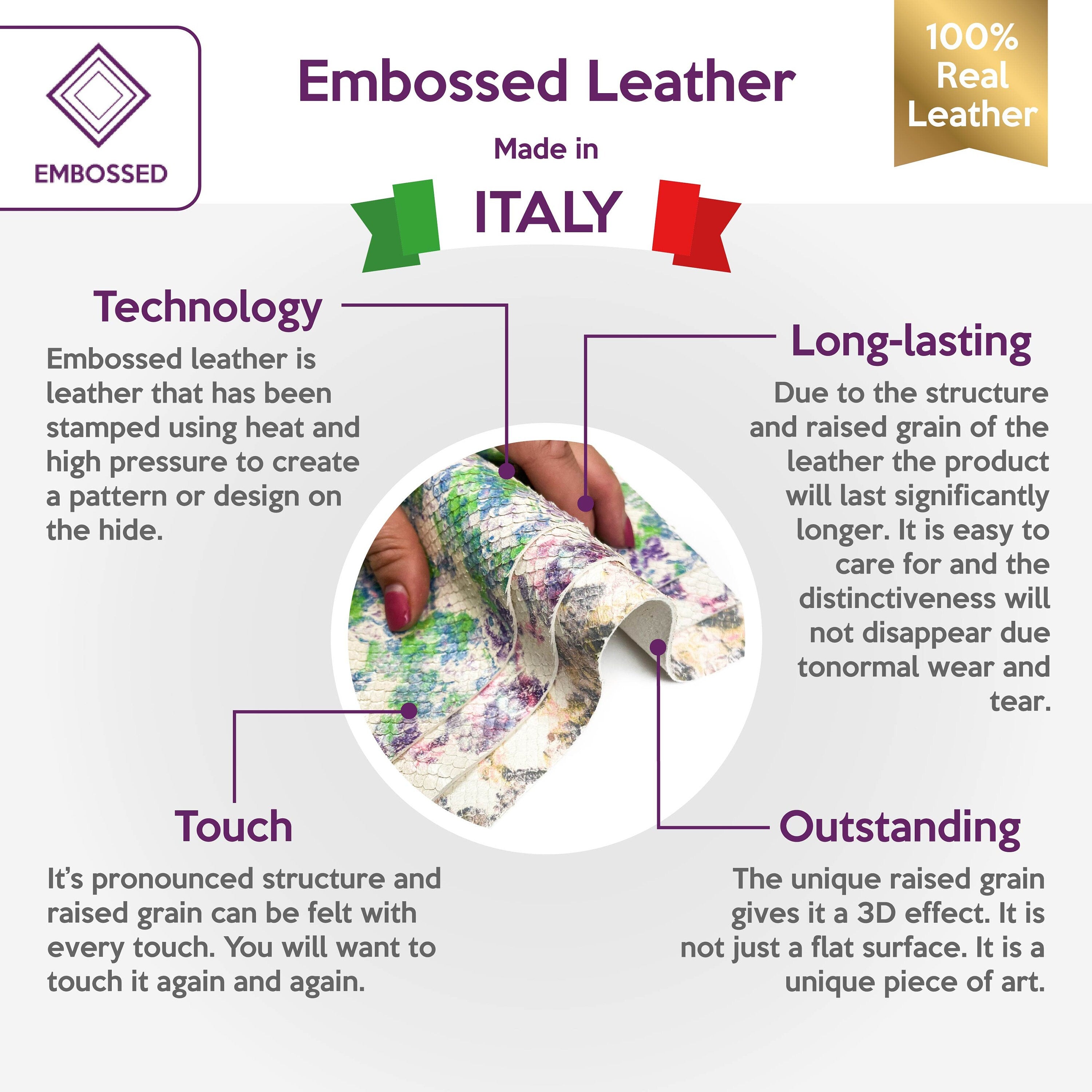 Three different colors with the same print. Amazing scraps for your best projects! Our mission is to provide only the best quality Italian leather samples to other leather workers, crafters of all kinds, small businesses, or Etsy shop for your own projects.