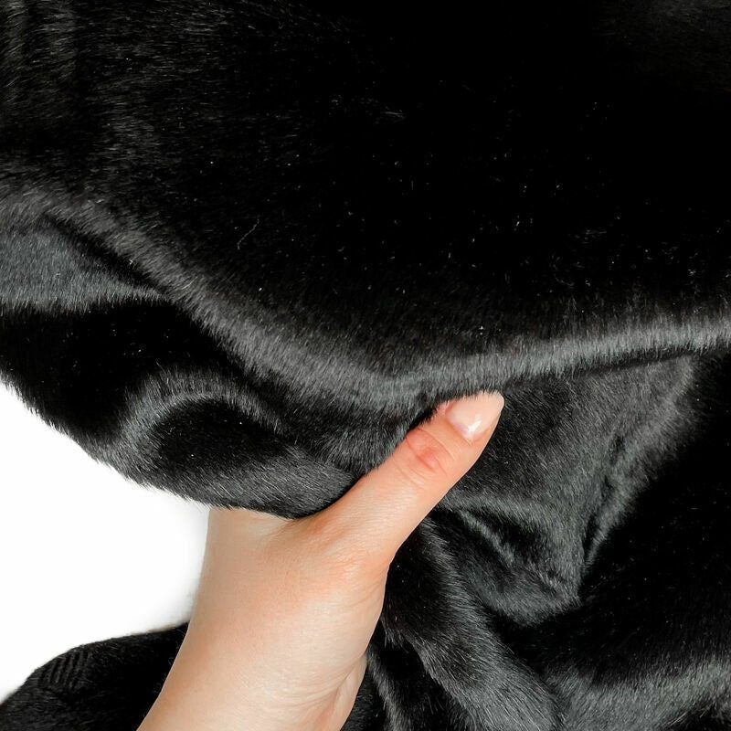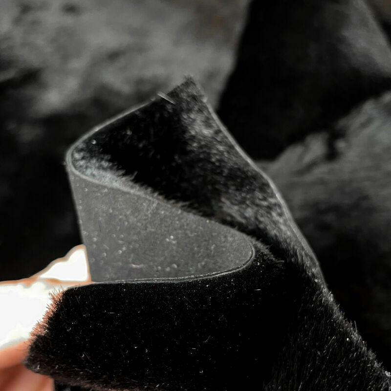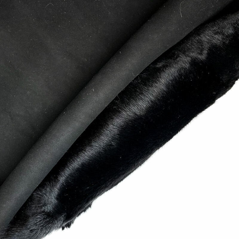 Shiny Black Italian Shearling Hides Warm Double Sided Skins 1m/2.5oz BLACK KANGAROO 1068