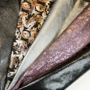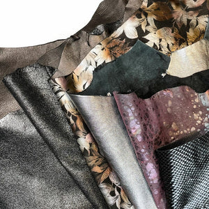 High-quality lambskin leather with unique and beautiful prints to match your bright ideas! Silver, purple, shiny black, snake and flower prints for your best projects! Our mission is to provide only the best quality Italian leather to other leather workers, crafters of all kinds, small businesses, or Etsy shop for your own projects.